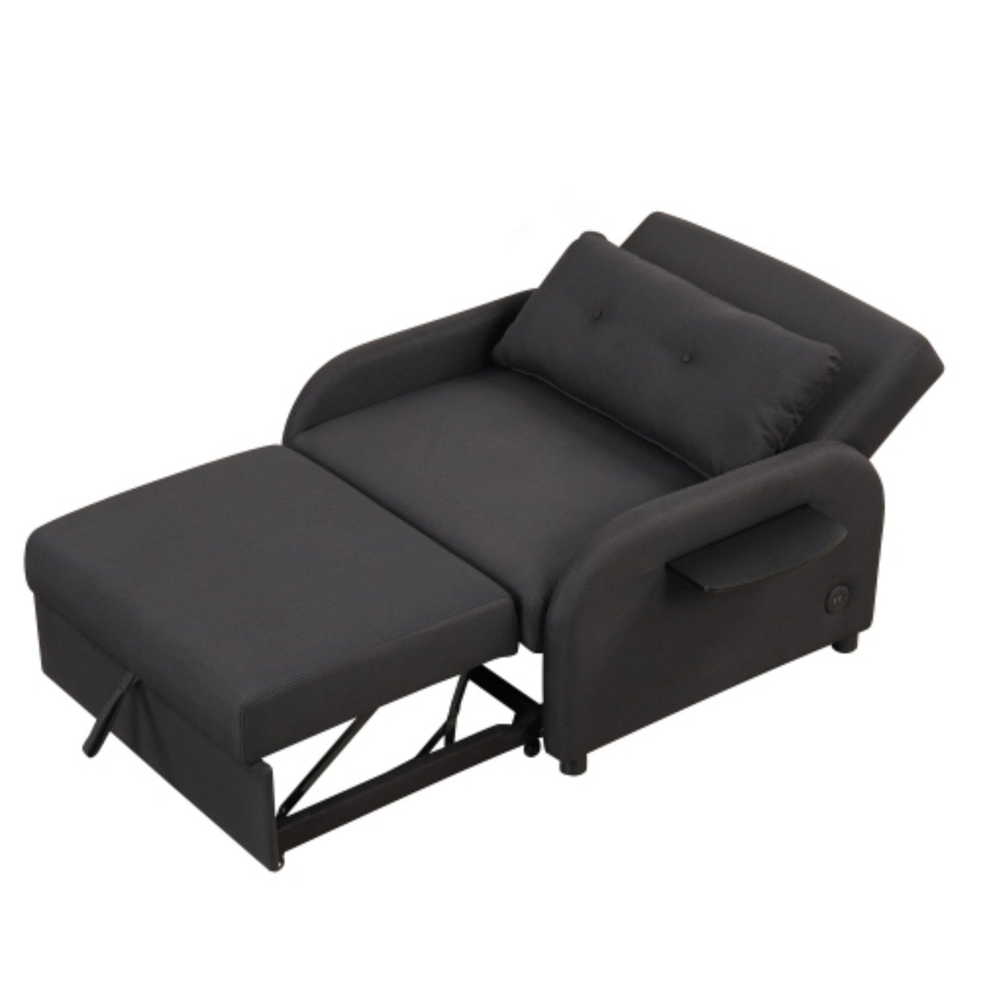 Maximize comfort and functionality with this versatile 3-in-1 Pull-Out Sofa Sleeper. Perfect for small spaces, it easily transforms from a chic sofa to a comfortable bed for guests, providing a sleek and practical solution for your home. Featuring a collapsible wing table and dual USB ports on each side, this sofa sleeper allows for convenient charging of devices while you relax. The sofa’s adjustable backrest offers three different reclining angles, while the movable cushions, upholstered in soft linen fabric, provide optimal comfort. With high-density, elastic sponge filling and a sturdy iron frame, this piece is designed to support long-lasting comfort. Available in three elegant colors—Grey, Black, and Beige—this pull-out sofa sleeper complements any room with ease.