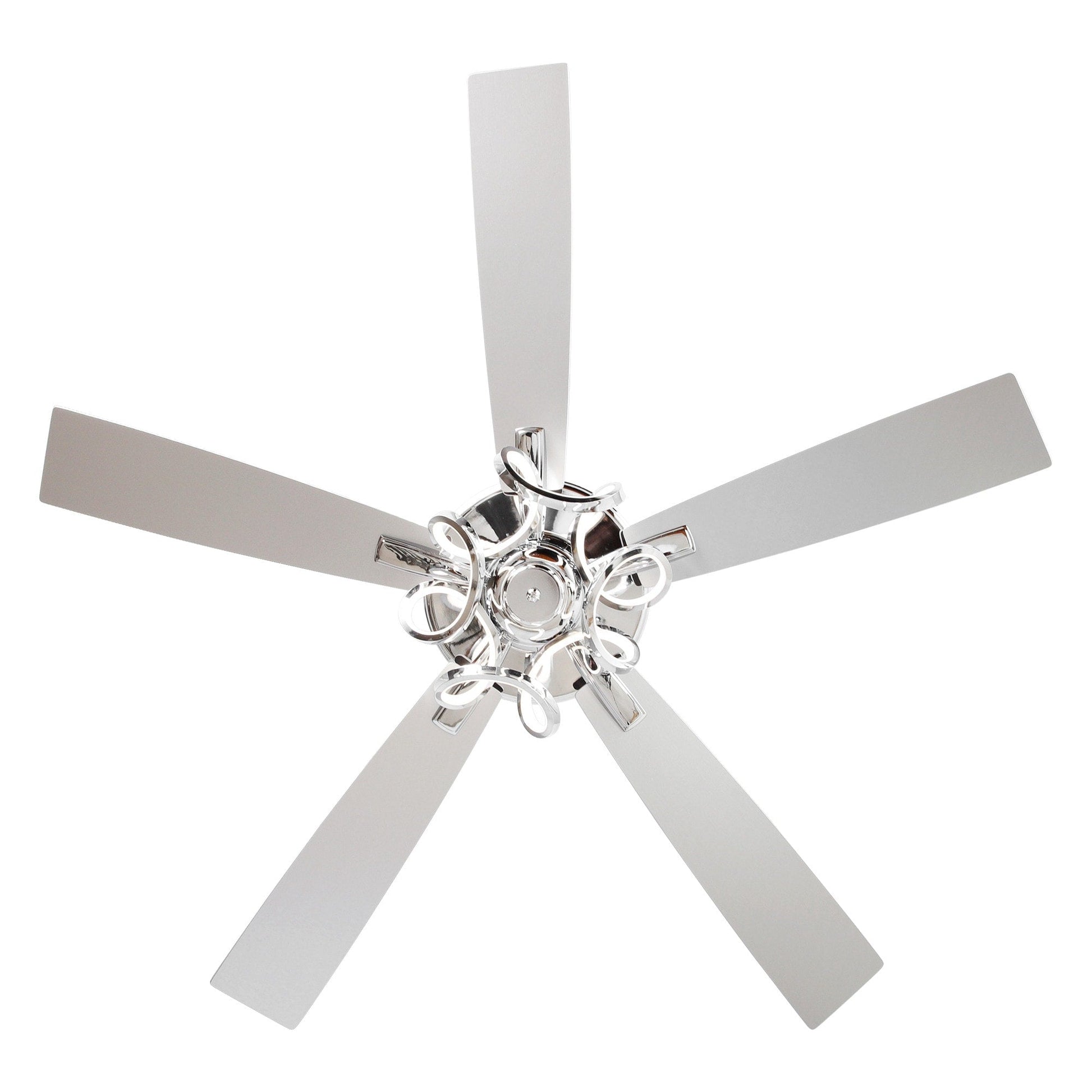 - Luminaire finition chromée avec 5 pales en bois réversibles pour argent et marron foncé