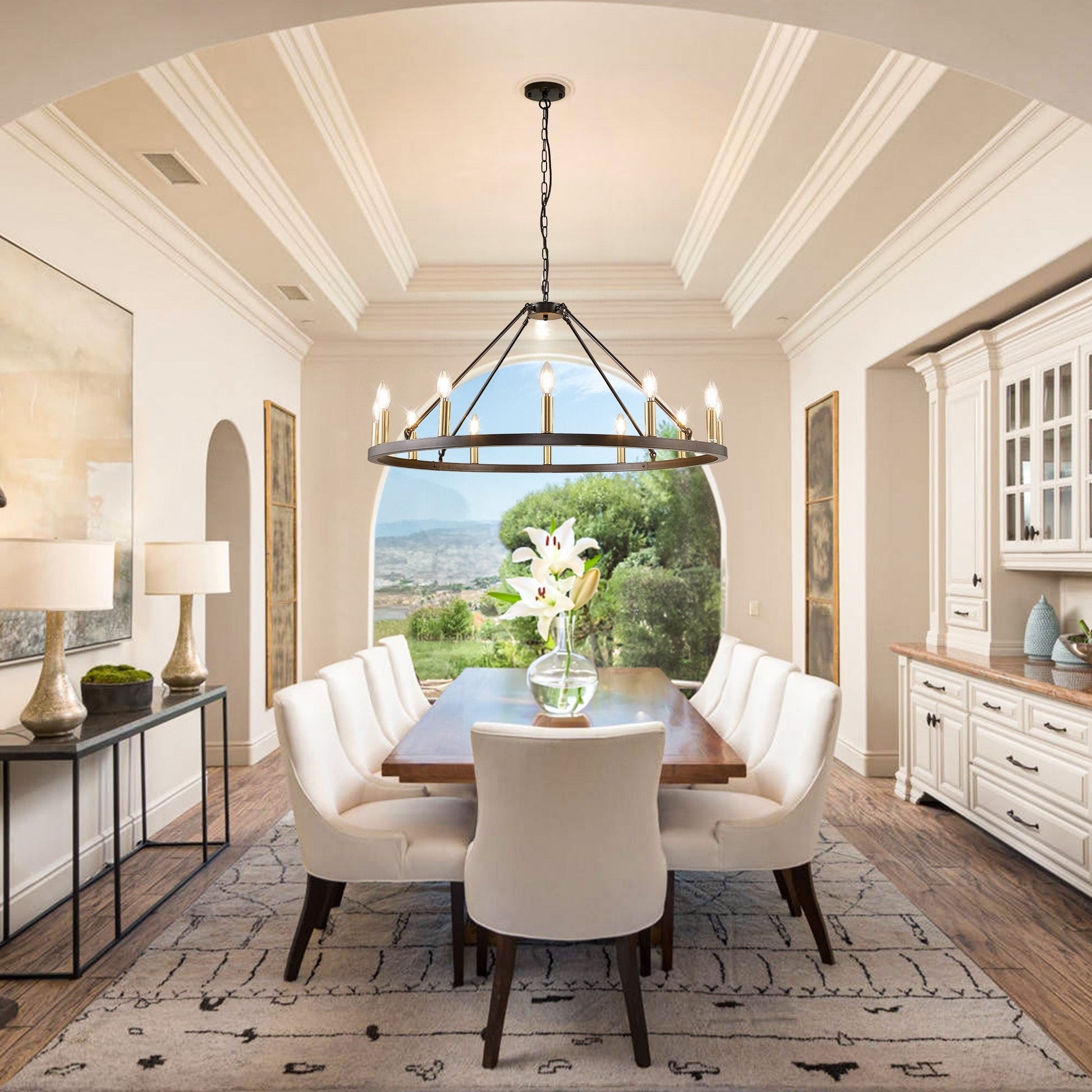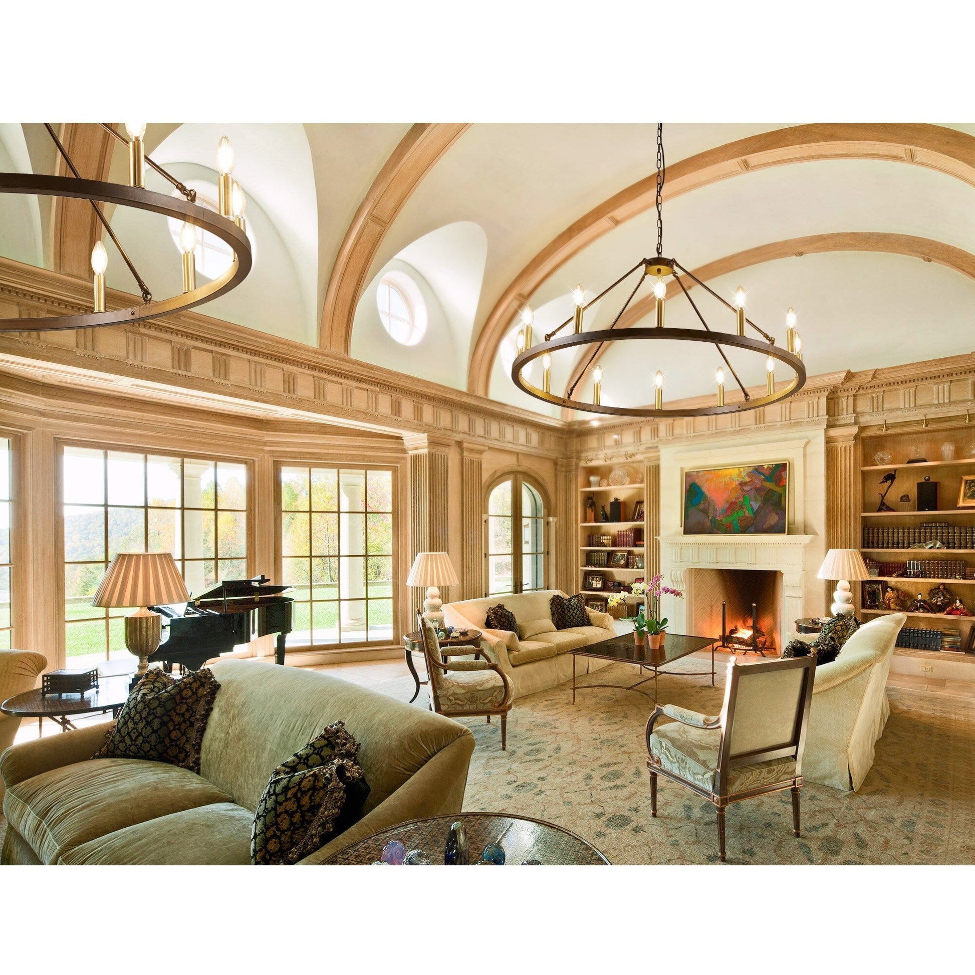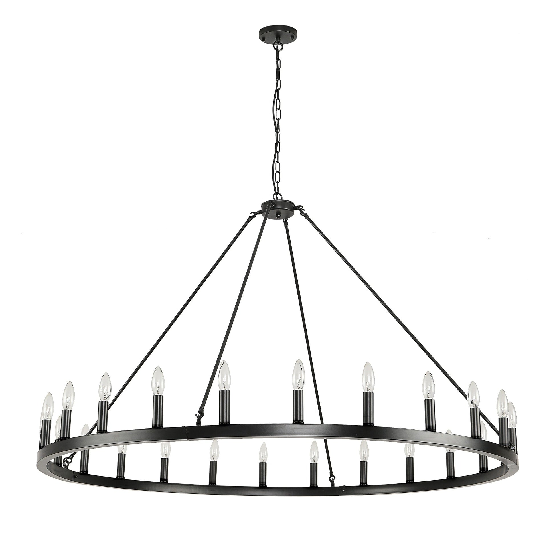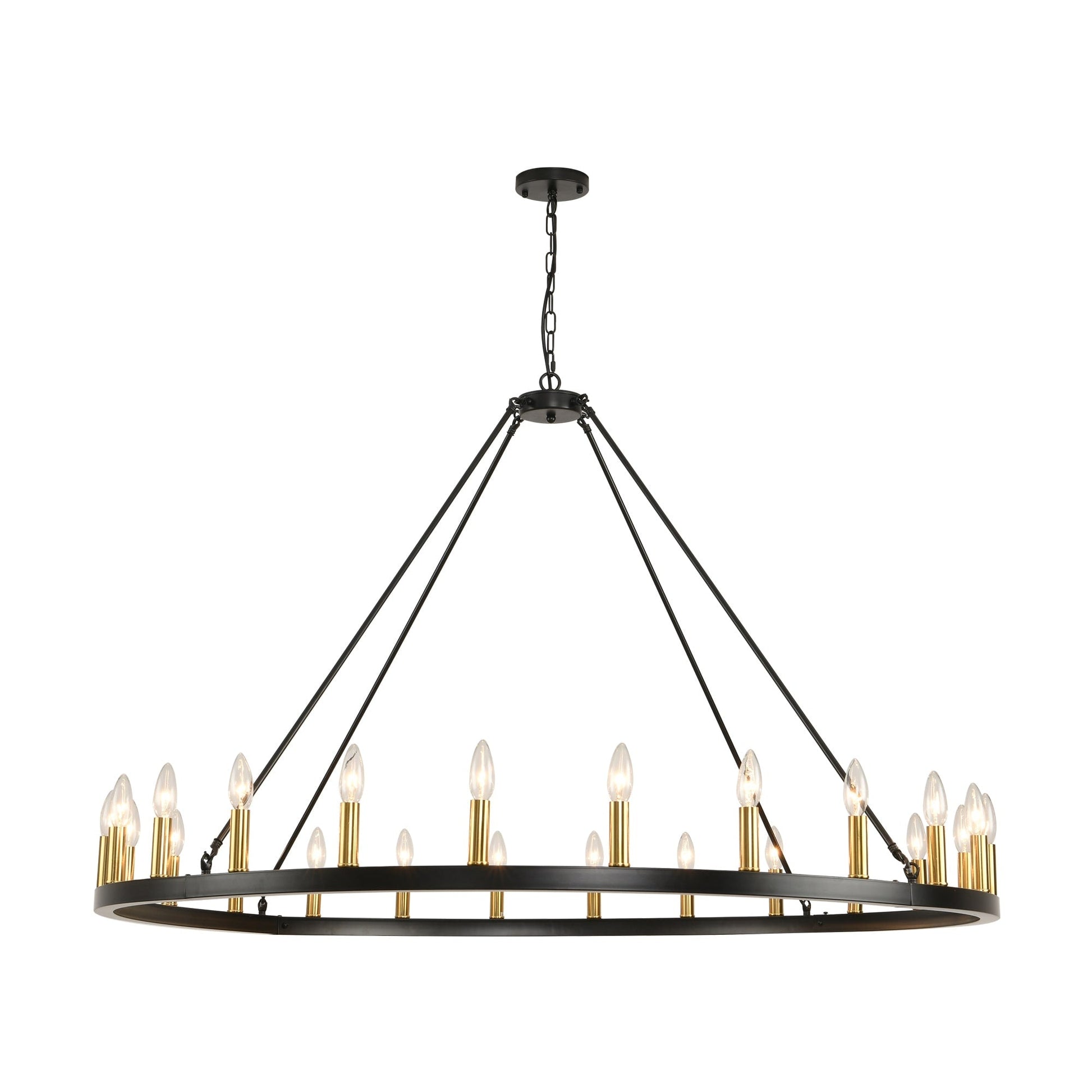 Lustre rond à 24 lumières en forme de roue de chariot de 54 pouces