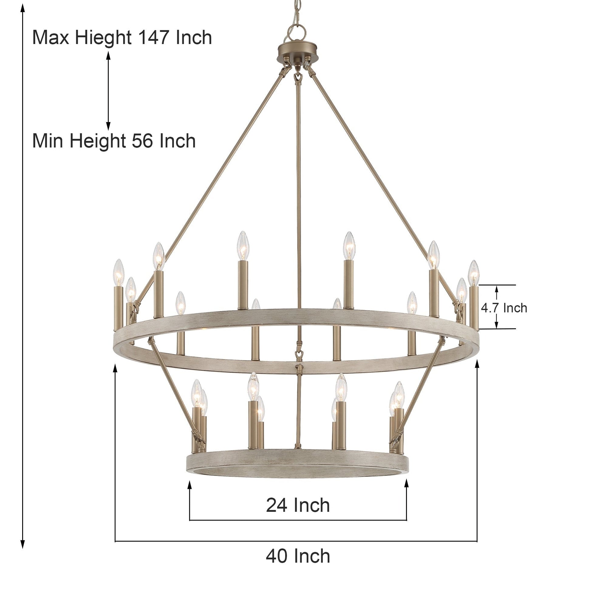 Illuminez votre espace de vie avec le grand lustre rustique Farmhouse en forme de roue de chariot. Fabriqué en acier et disponible dans une variété de couleurs, ce lustre durable s'intègre harmonieusement à de nombreux styles. Avec sa roue de chariot à deux niveaux et ses vingt chandeliers, il est parfait pour éclairer pleinement un grand espace comme un salon, une salle à manger ou un grand hall d'entrée à deux étages. Personnalisez votre espace avec des ampoules à culot bougie pour un style vintage français ou des ampoules à culot bâton pour une touche moderne.