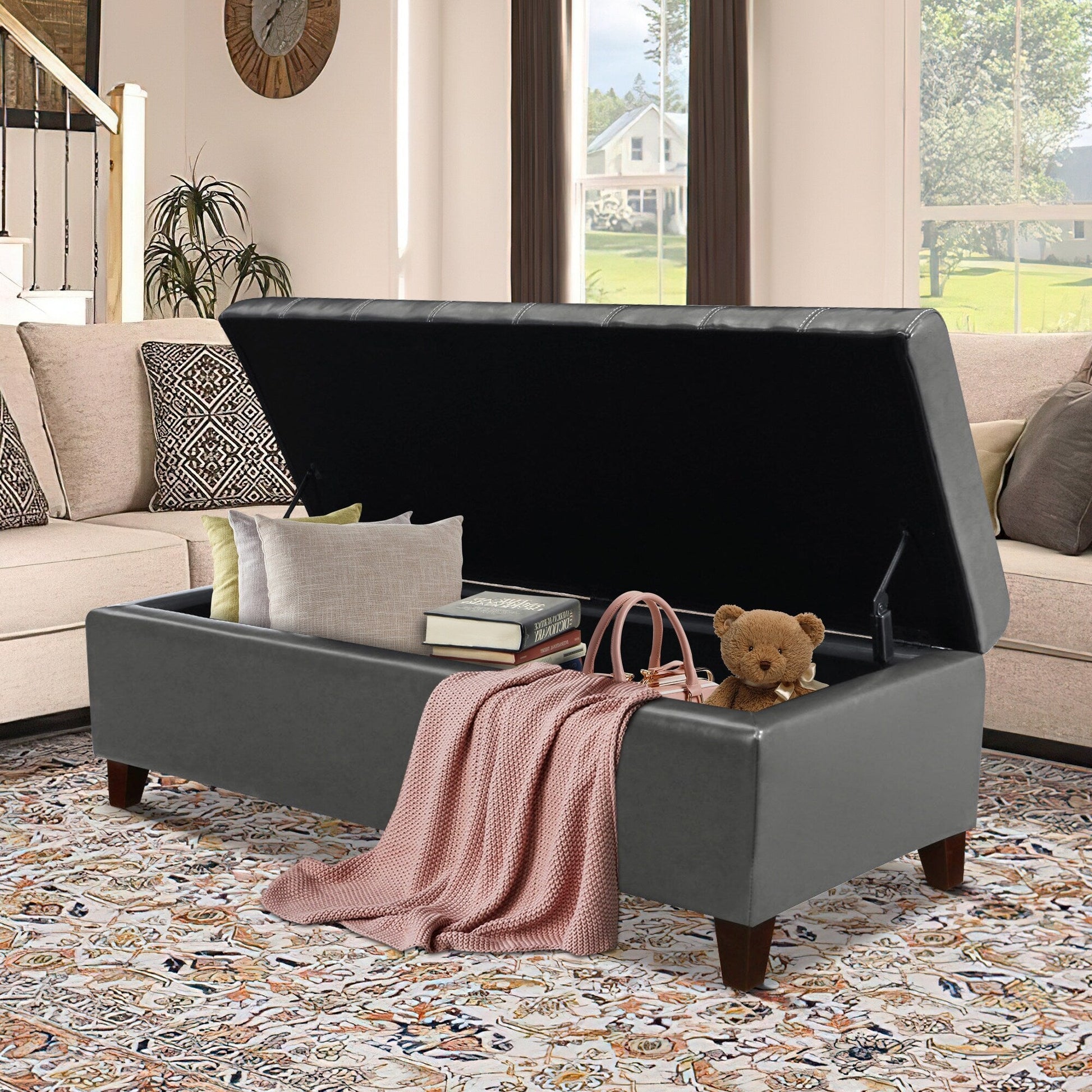 - Grand espace de rangement intérieur, vous pourrez y ranger vos couvertures, oreillers, chiffons, livres ou jouets d'enfants.