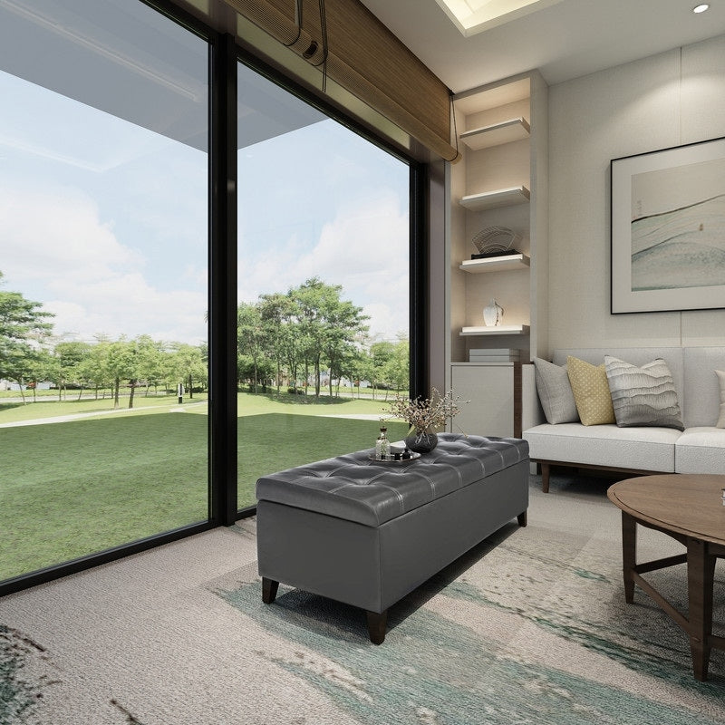 Ajoutez sophistication et rangement à votre espace avec ce banc ottoman de rangement. Cet élégant meuble, disponible en plusieurs coloris, est doté d'un rembourrage capitonné pour une assise confortable et d'un grand espace de rangement intérieur idéal pour les couvertures, les livres ou autres articles ménagers. Son design en relief apporte du caractère à votre chambre ou à votre entrée, tandis que son cuir reconstitué résistant garantit une qualité durable.