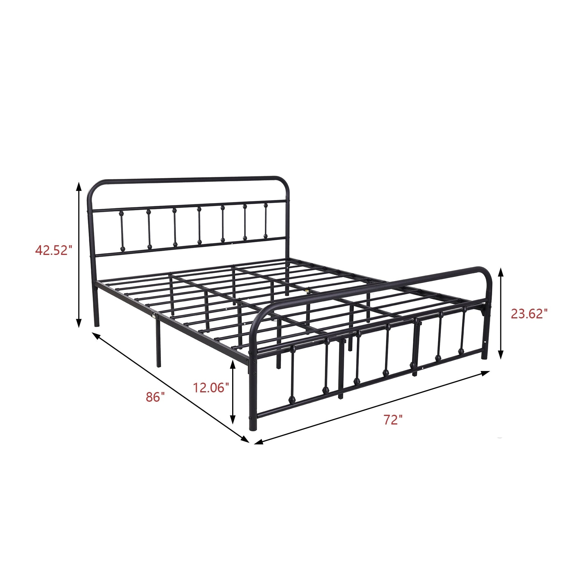 Cadre de lit plateforme en métal vintage simple Alazyhome, montage facile