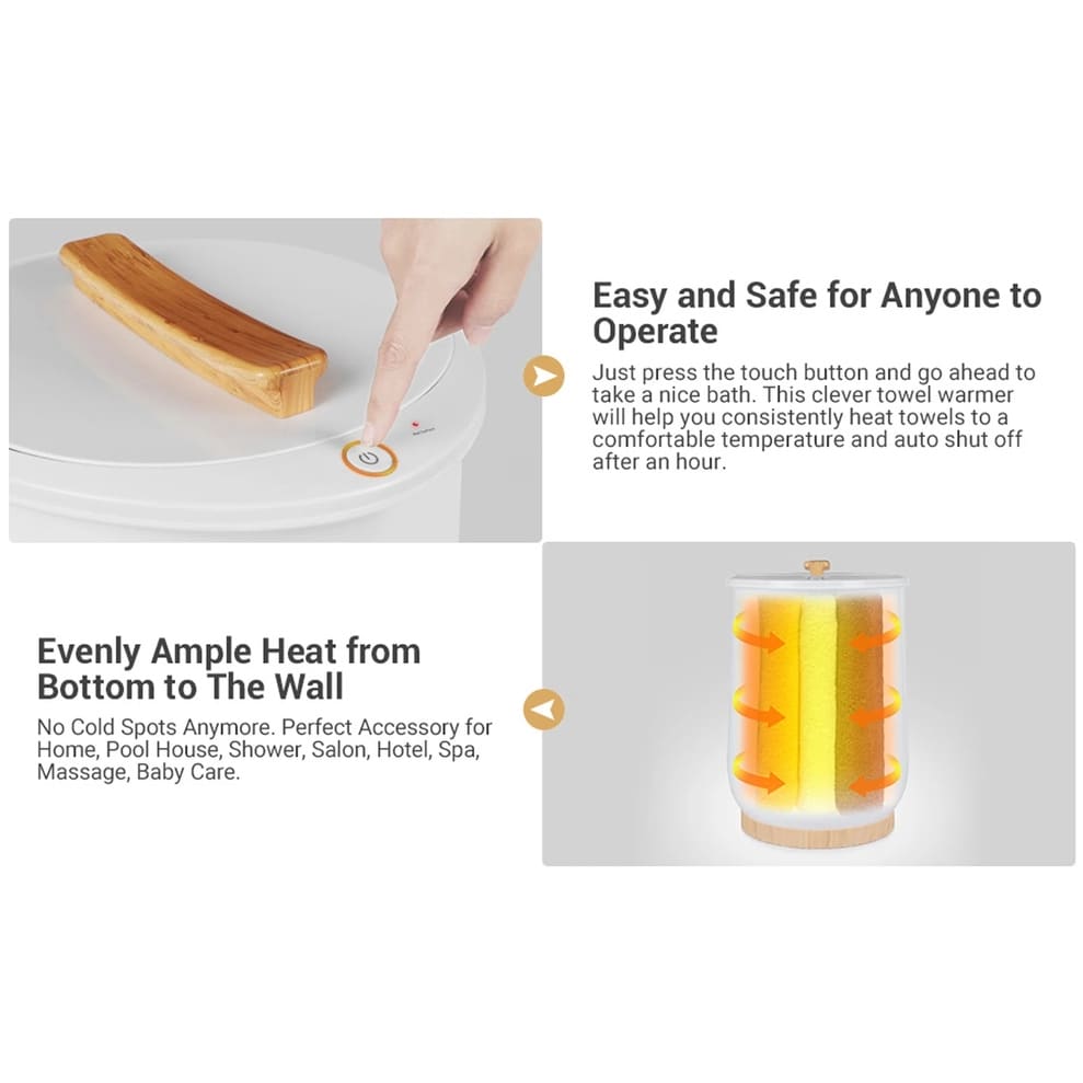 Système de chauffage rapide à 360° amélioré : grâce à sa méthode de chauffage unique, la chaleur se diffuse facilement à l'intérieur du sèche-serviettes, pour une chaleur uniforme sous tous les angles. Chauffe rapidement en seulement 1 minute et atteint une température élevée en seulement 6 minutes. Profitez d'une serviette et d'une couverture chaudes et douces après une douche rapide, sans laisser de traces de froid.
