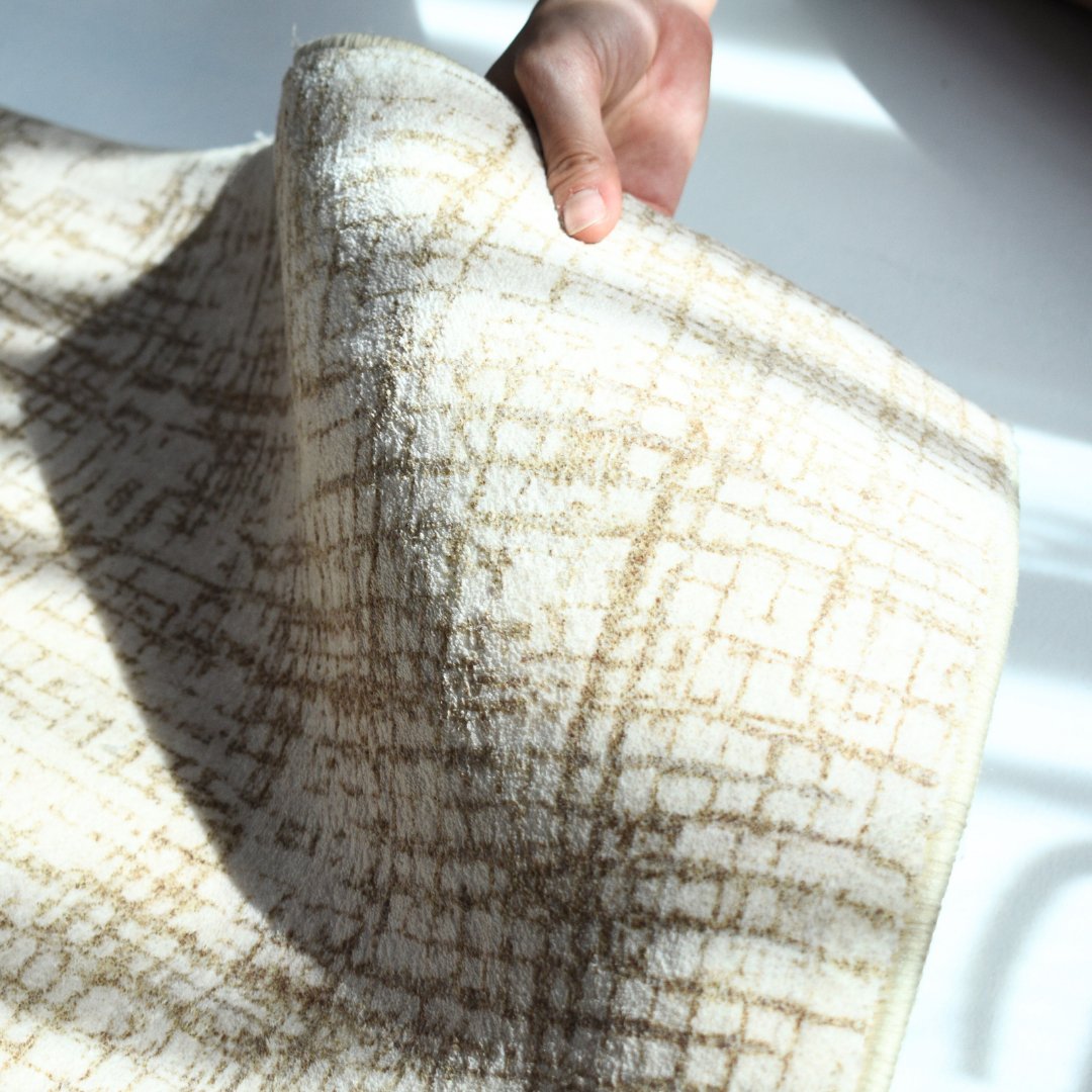 Le deuxième tapis présente un subtil motif hachuré dans des tons beige doré. Son design texturé offre un style raffiné et minimaliste, idéal pour les espaces modernes en quête de chaleur et d'élégance.
