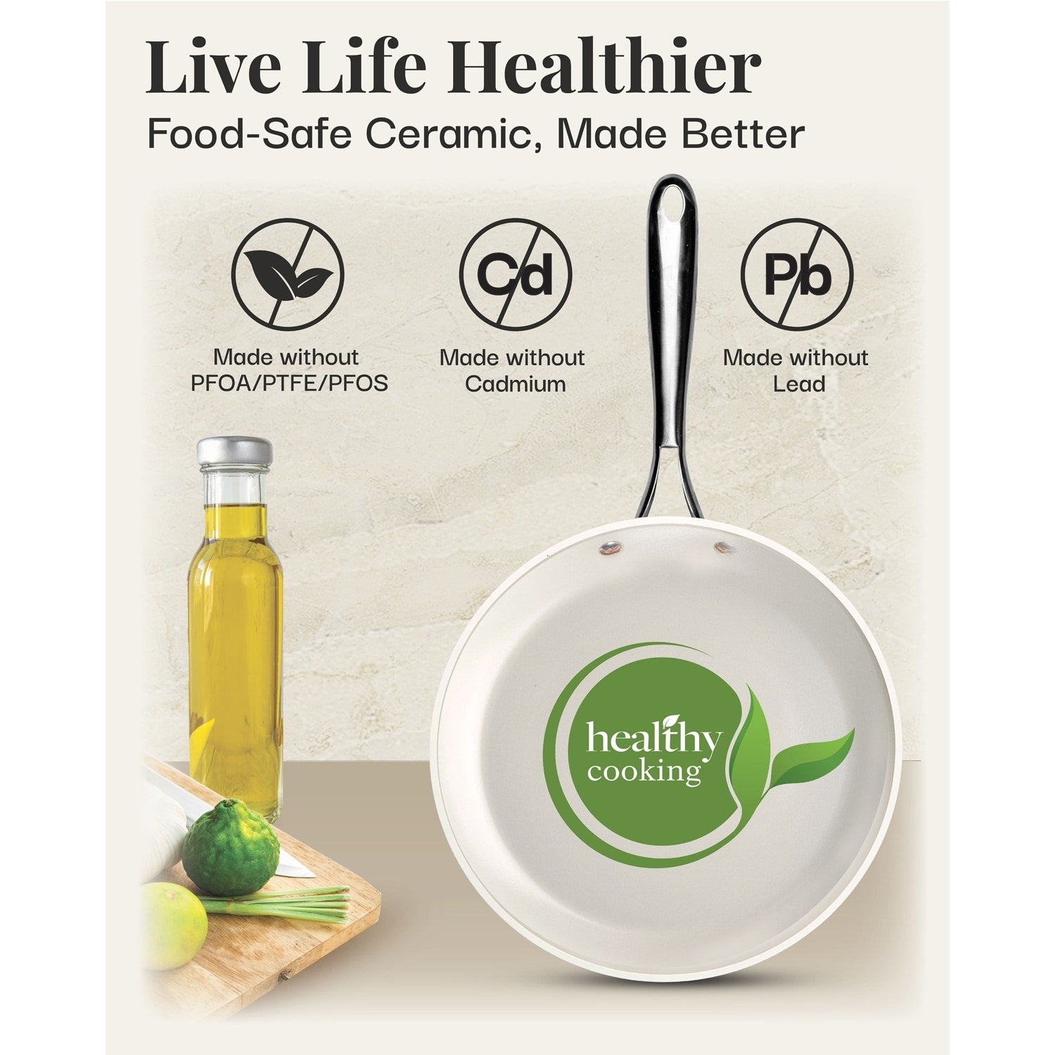 Modernisez votre cuisine avec la batterie de cuisine antiadhésive Gotham Steel 12 pièces en céramique, couleur crème élégante. Dotée d'une surface triple couche en céramique-titane renforcée au diamant, elle garantit un démoulage facile des aliments, une durabilité et une résistance aux rayures. Sans produits toxiques et compatible lave-vaisselle, cette batterie offre une répartition homogène de la chaleur sur tous types de plaques de cuisson et passe au four jusqu'à 260 °C. Comprend des poêles, des sauteuses, des casseroles et une marmite. Élégante et efficace, elle est idéale pour une cuisine saine.
