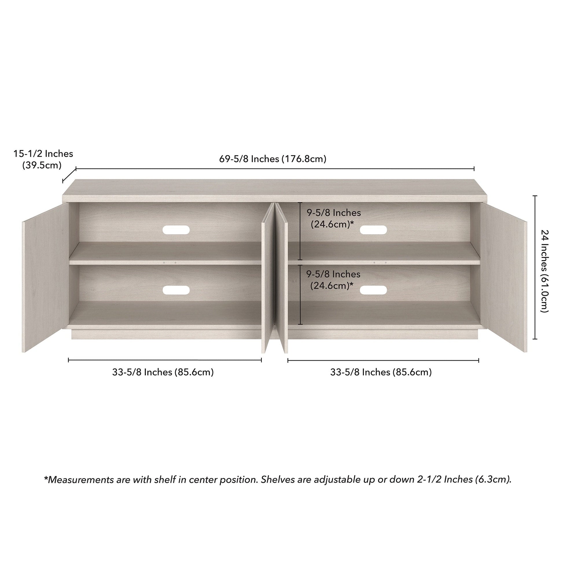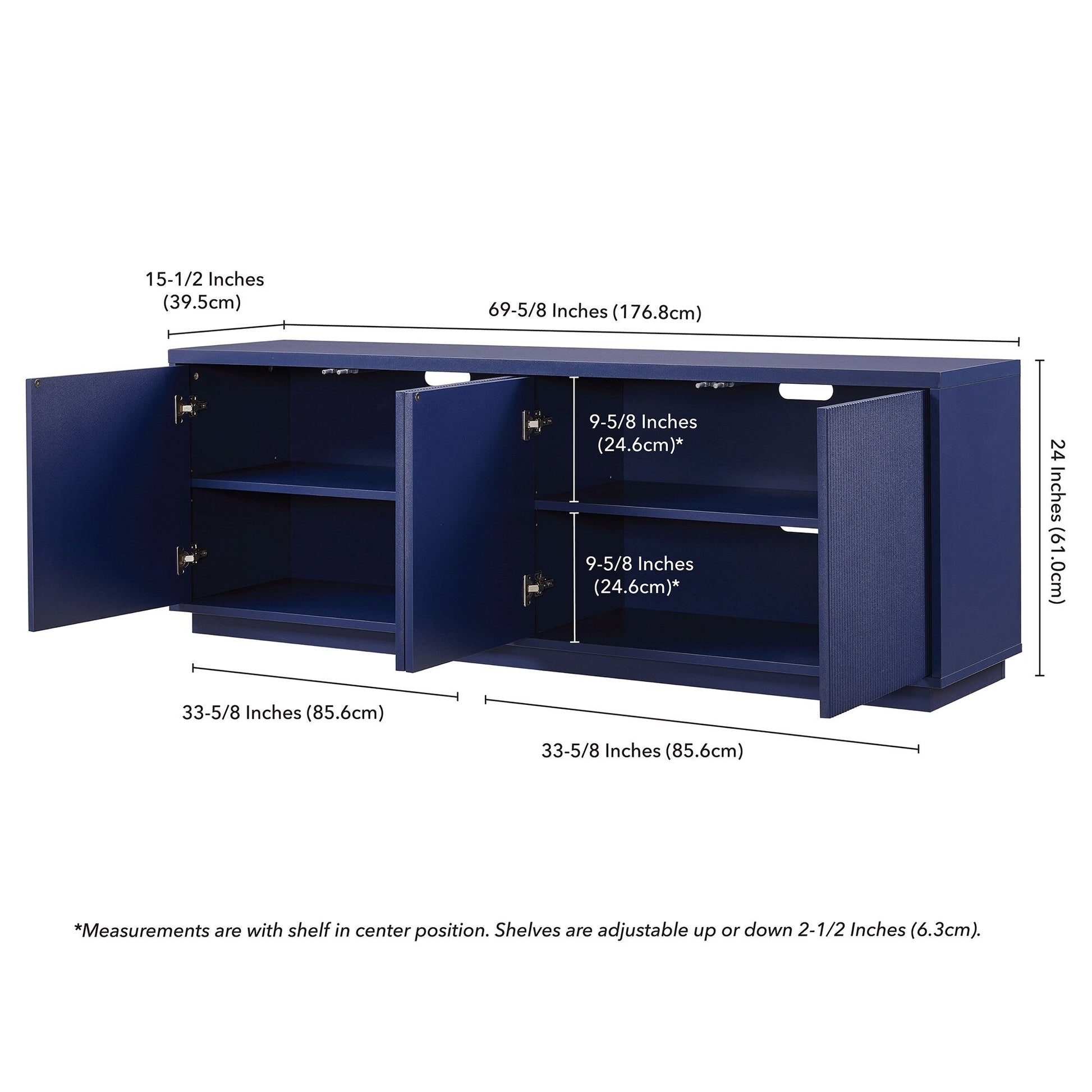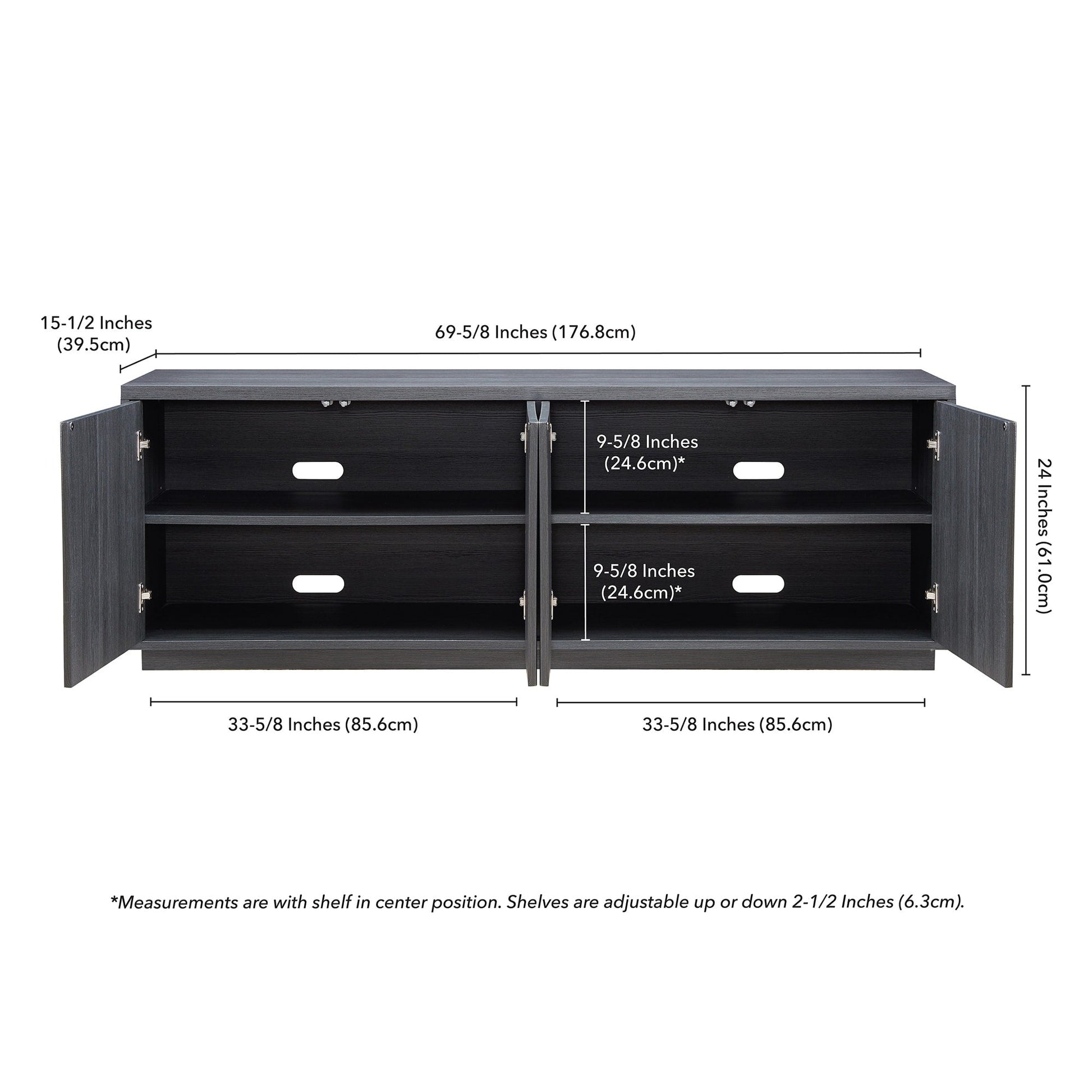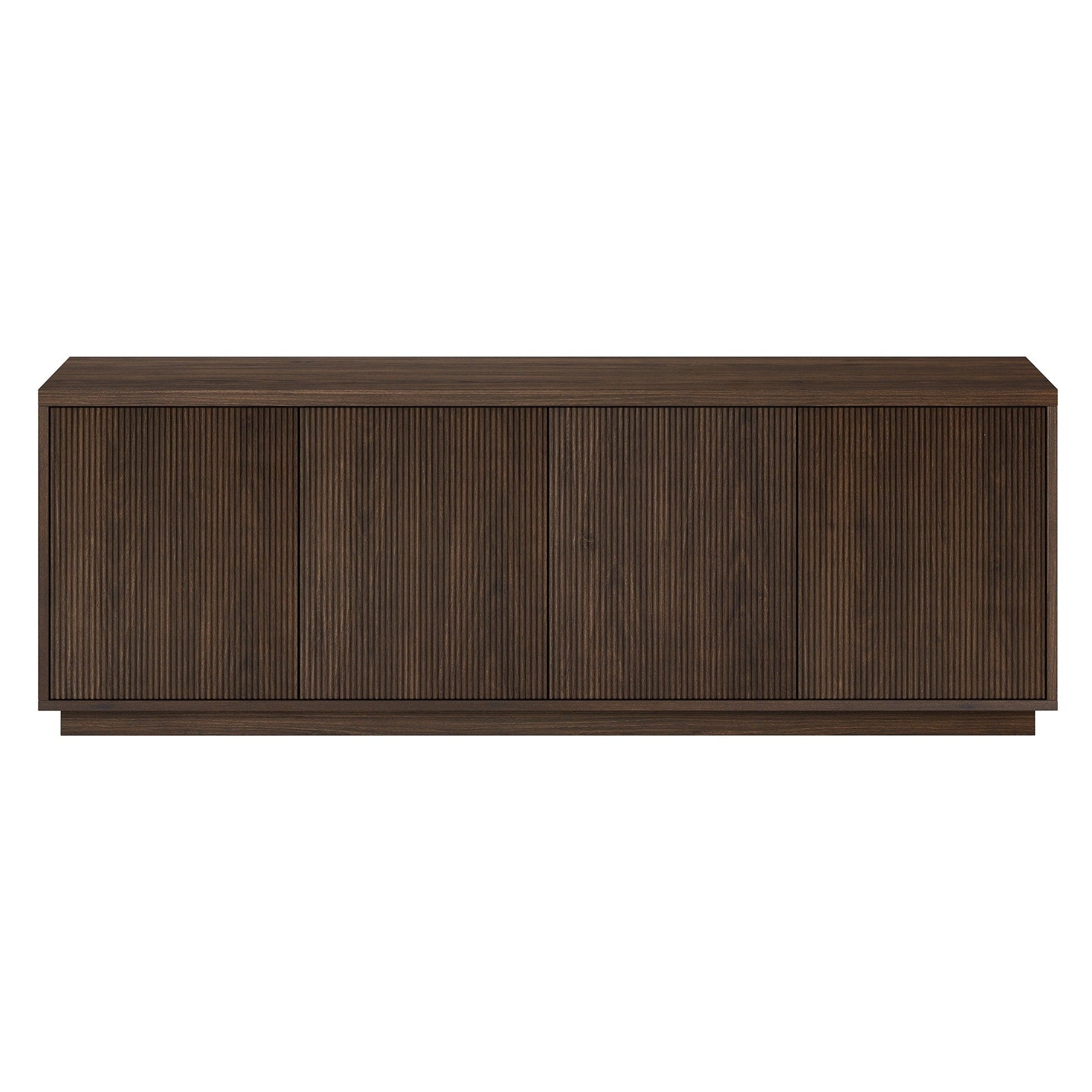 Texture et design tendance se marient dans ce meuble TV transitionnel. Avec sa finition imitation bois et ses portes texturées, ce meuble fera sensation dans votre salon, bureau ou salle de jeux. Son socle crée une illusion de transition harmonieuse avec le sol, comme s'il avait toujours été là. Son design moderne et contemporain comprend quatre portes entièrement fermées et quatre étagères intérieures, offrant un vaste espace de rangement pour vos appareils électroniques, jeux, livres et bien plus encore.