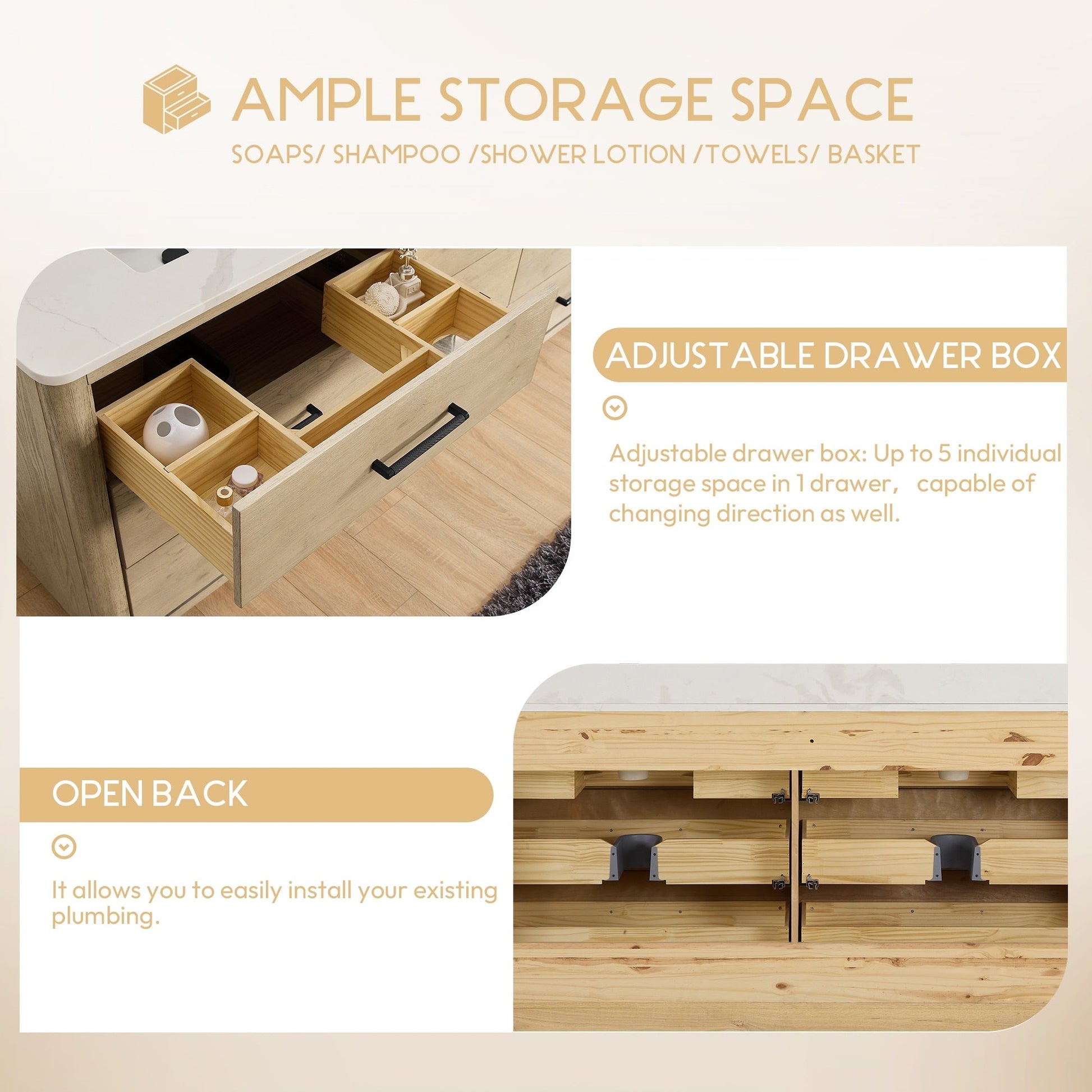 72 pouces - Six tiroirs à queue d'aronde robustes à fermeture douce sont dotés de cloisons intégrées pour un accès facile à tous vos articles de toilette.