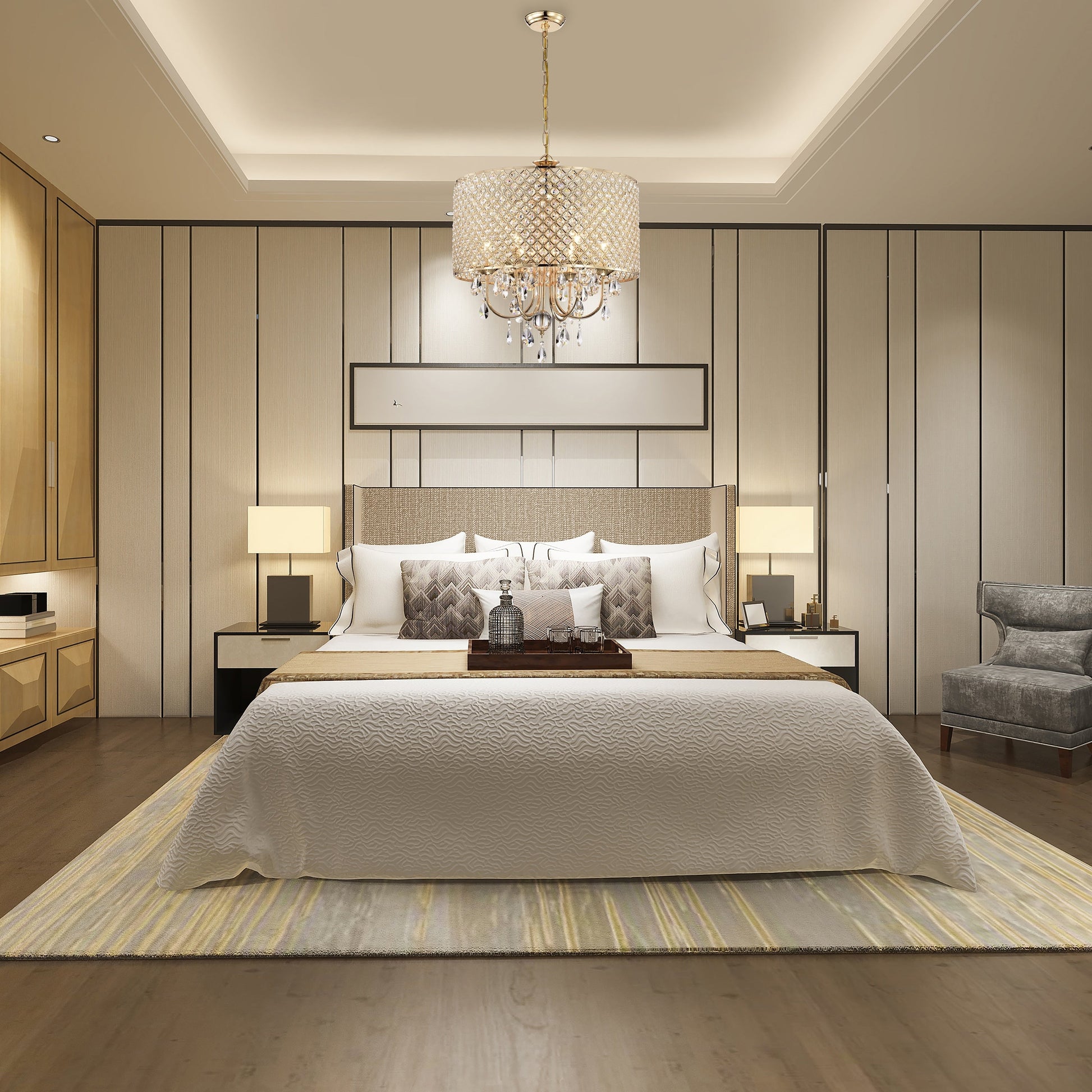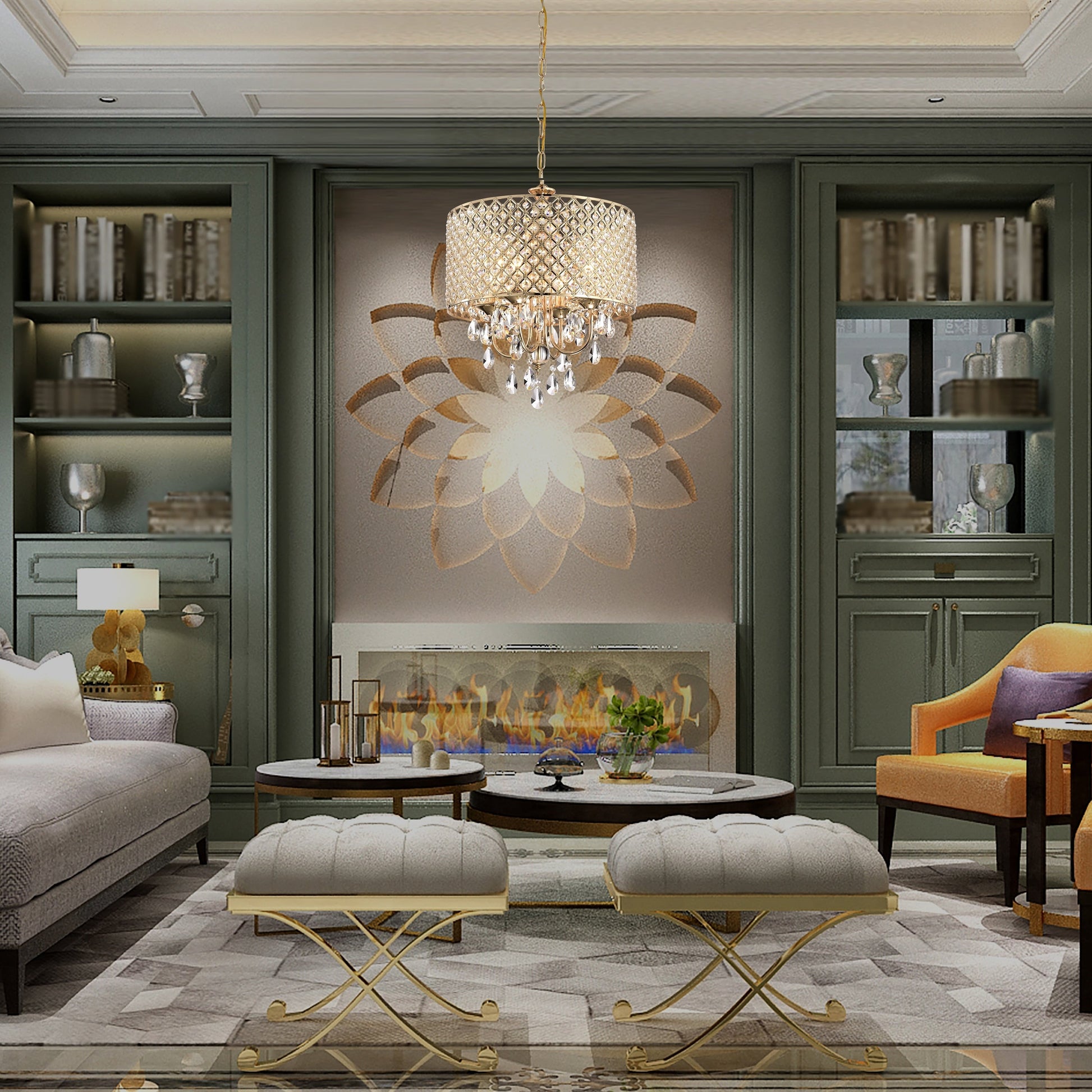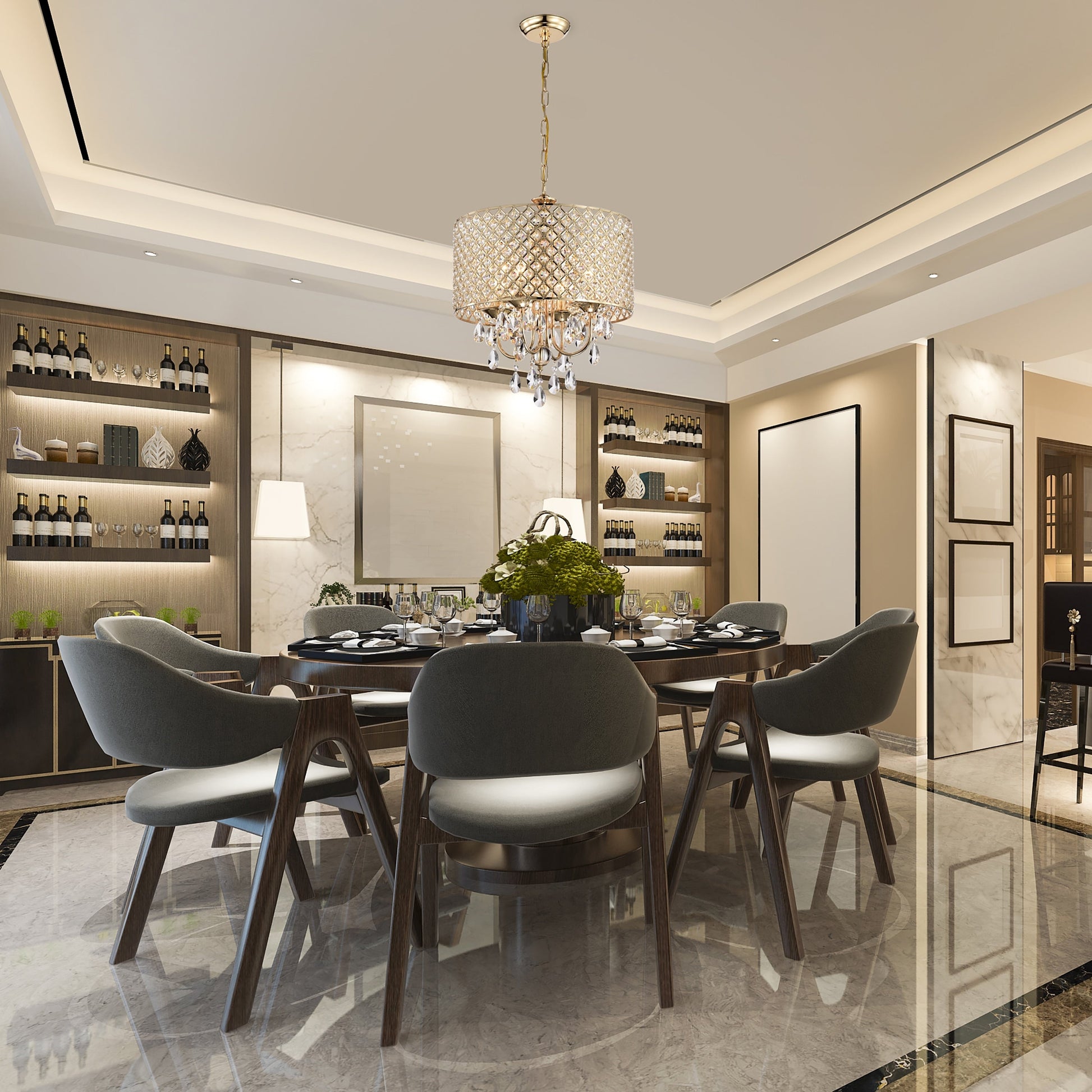 - Abat-jour tambour incrusté de cristaux et cristaux en cascade pour une touche élégante