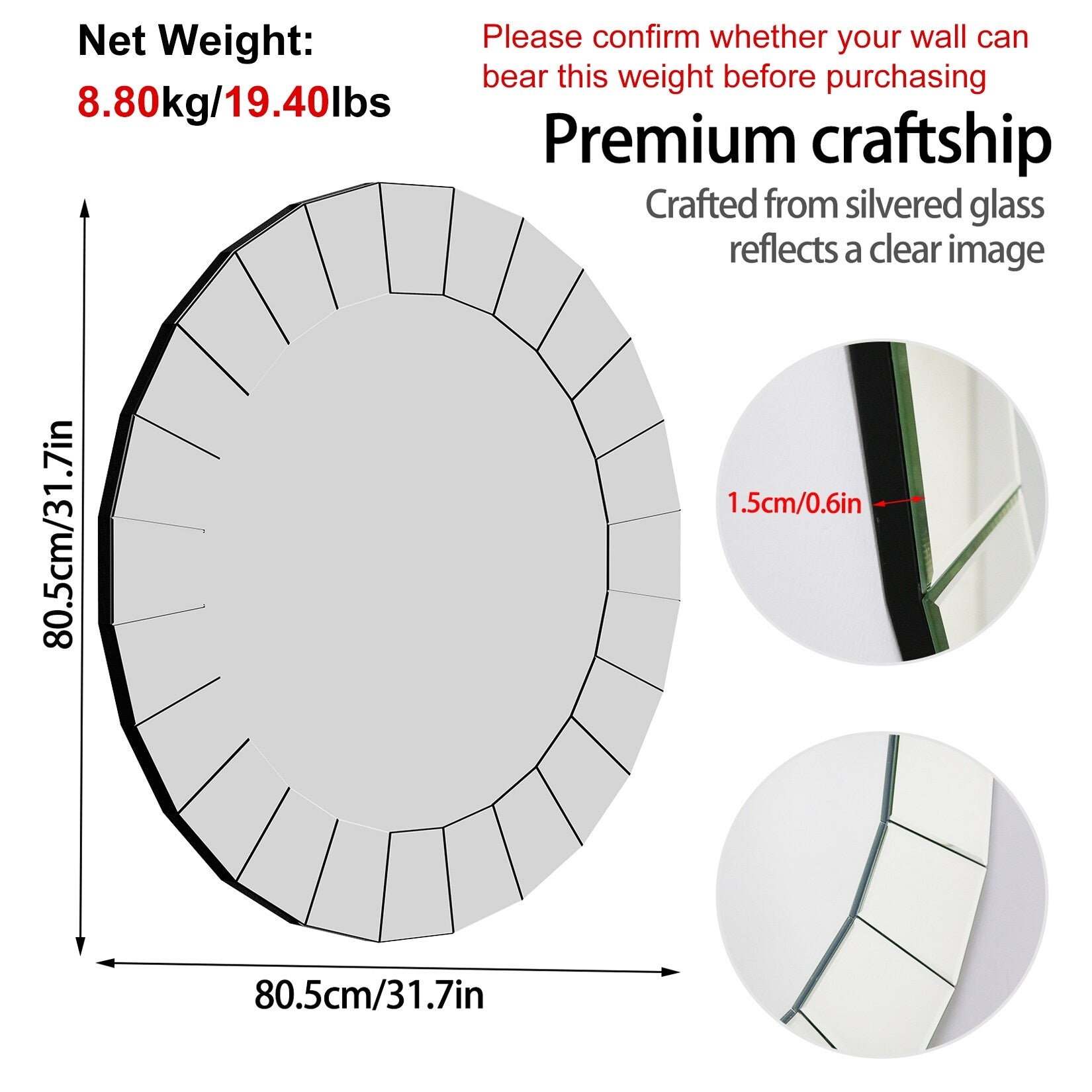 Créez une ambiance saisissante chez vous ou au bureau avec ce miroir d'appoint rond et contemporain. Décorez n'importe quel mur imposant avec ce miroir contemporain éblouissant et attirez tous les regards. Miroir rond contemporain transparent style soleil. Ce miroir d'appoint illuminera sans aucun doute votre intérieur et est parfait pour une touche de fraîcheur et de modernité. Un miroir est intégré au cadre, idéal pour un usage quotidien.