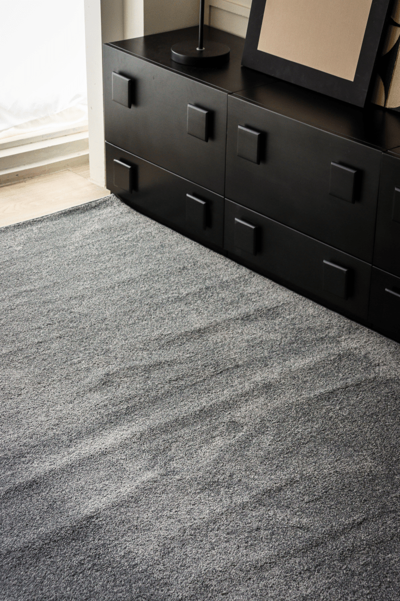 Ce tapis arbore une riche teinte gris-bleu avec de subtiles variations de tons, parfaite pour apporter une touche sophistiquée et moderne à votre intérieur. Son velours épais et dense assure un confort optimal sous les pieds, idéal pour créer des espaces de vie chaleureux.