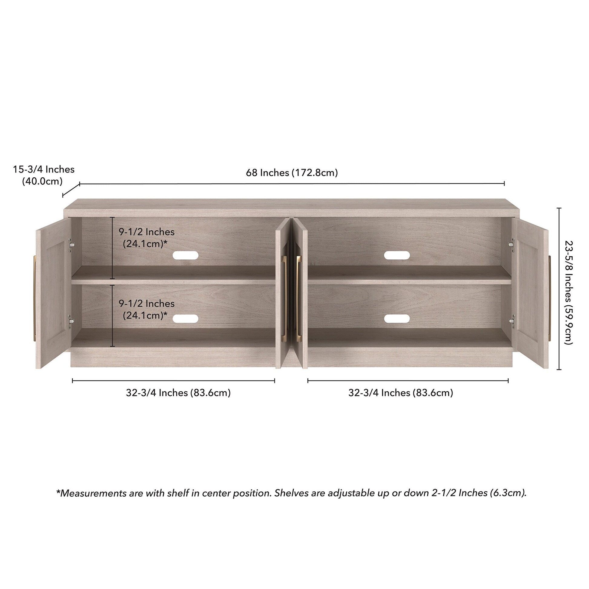 Alliez fonctionnalité et design transitionnel classique avec ce meuble TV moderne. Son bois riche crée une palette neutre et chaleureuse qui s'harmonisera parfaitement avec toutes les palettes de couleurs, tandis que son style classique s'harmonise parfaitement avec le style de votre salon, bureau ou salle de jeux. Ce meuble à dossier massif est doté de deux grands caissons fermés avec une élégante quincaillerie finition laiton. Des découpes pour la gestion des câbles et des étagères intérieures réglables permettent d'organiser vos rangements multimédias et vos consoles.