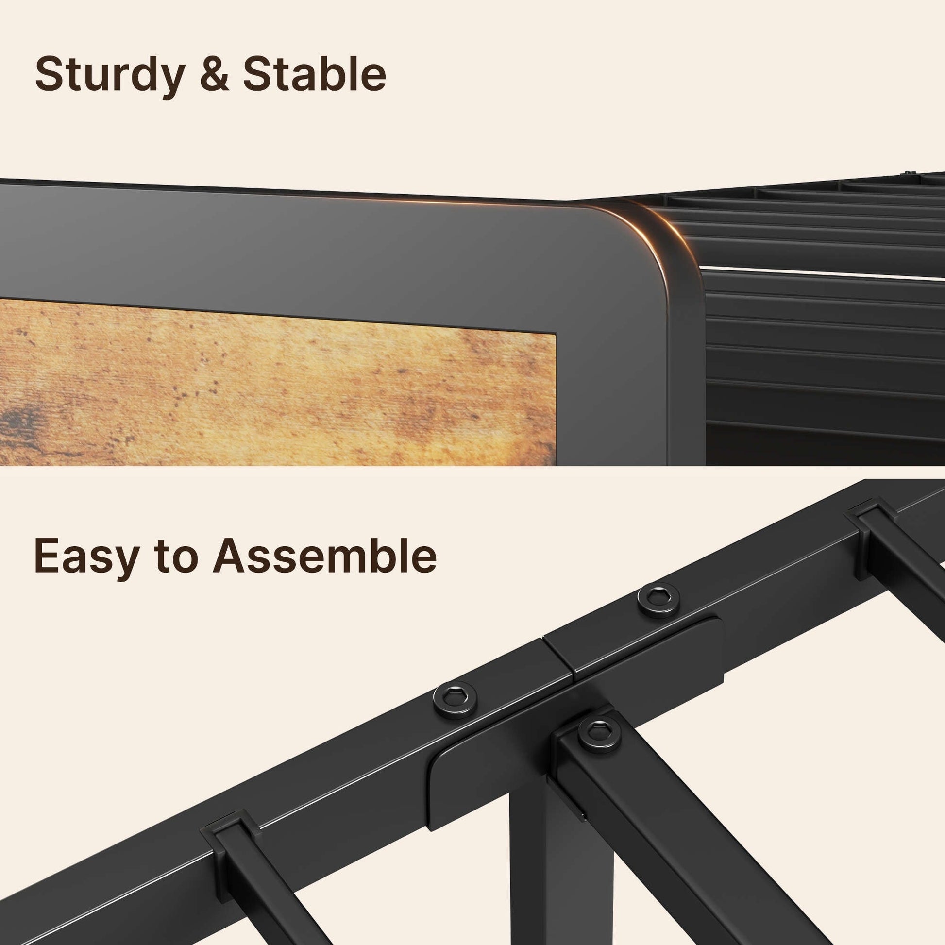 Cadre de lit plateforme en métal pour lit simple, double, queen ou king size avec tête de lit rembourrée et rangement