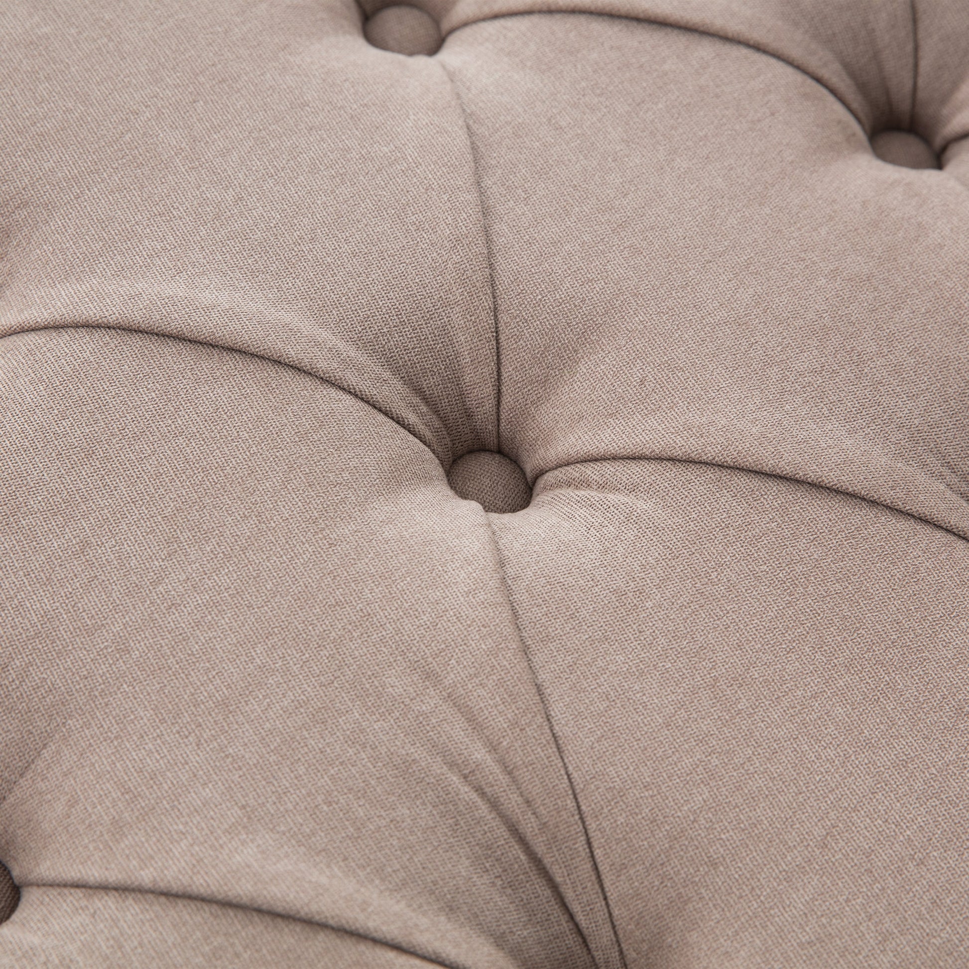 - Design élégant à rabat touffeté et accoudoirs roulés