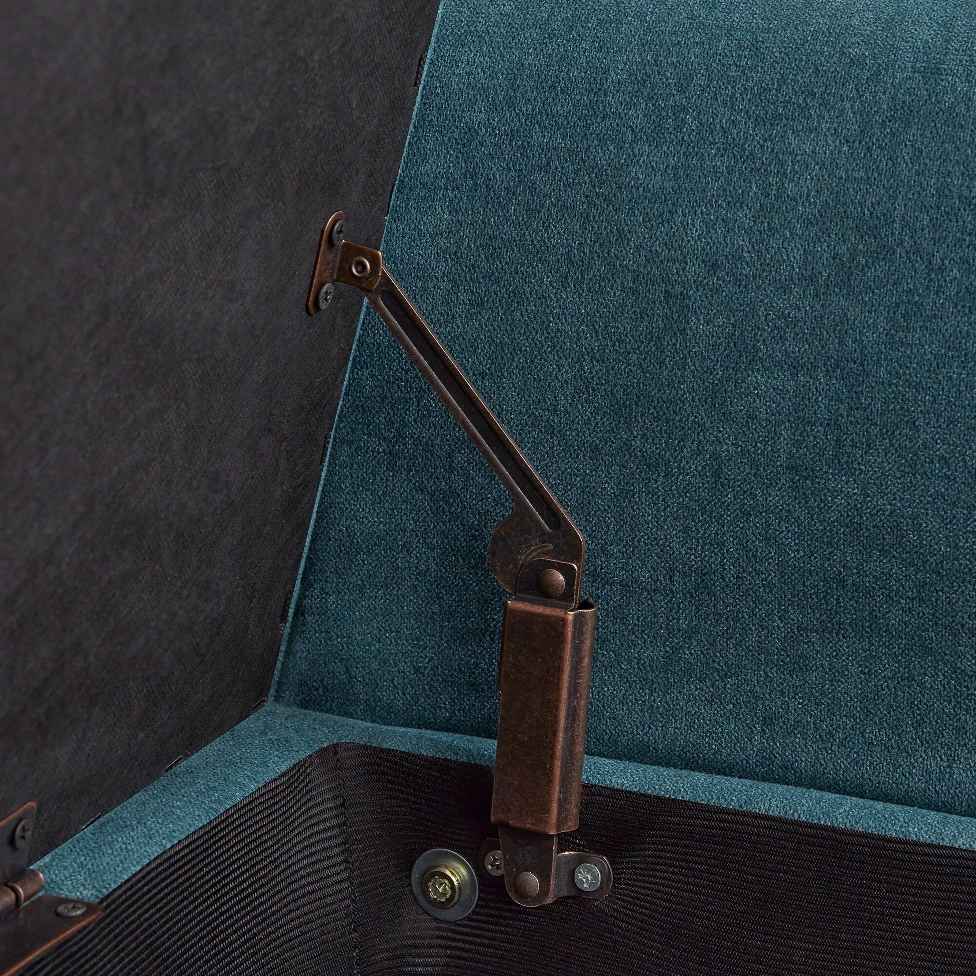 Cet élégant banc de rangement capitonné vous apportera surprise et bonheur ! Placez-le dans votre chambre ou votre salon, non seulement comme meuble, mais aussi pour embellir votre intérieur. Idéal pour votre famille et vos animaux de compagnie, il est doté d'accoudoirs simples et roulés pour une allure luxueuse. Ajoutez un coussin confortable sur le dessus et il se transformera en un adorable petit canapé. Revêtu d'un tissu polyester de haute qualité, il offre une assise douce et confortable. Son plateau capitonné rabattable ajoute une touche de sophistication tout en offrant un accès facile au vaste espace de rangement. Soutenu par de robustes pieds en bois, il est non seulement élégant, mais aussi durable et stable.