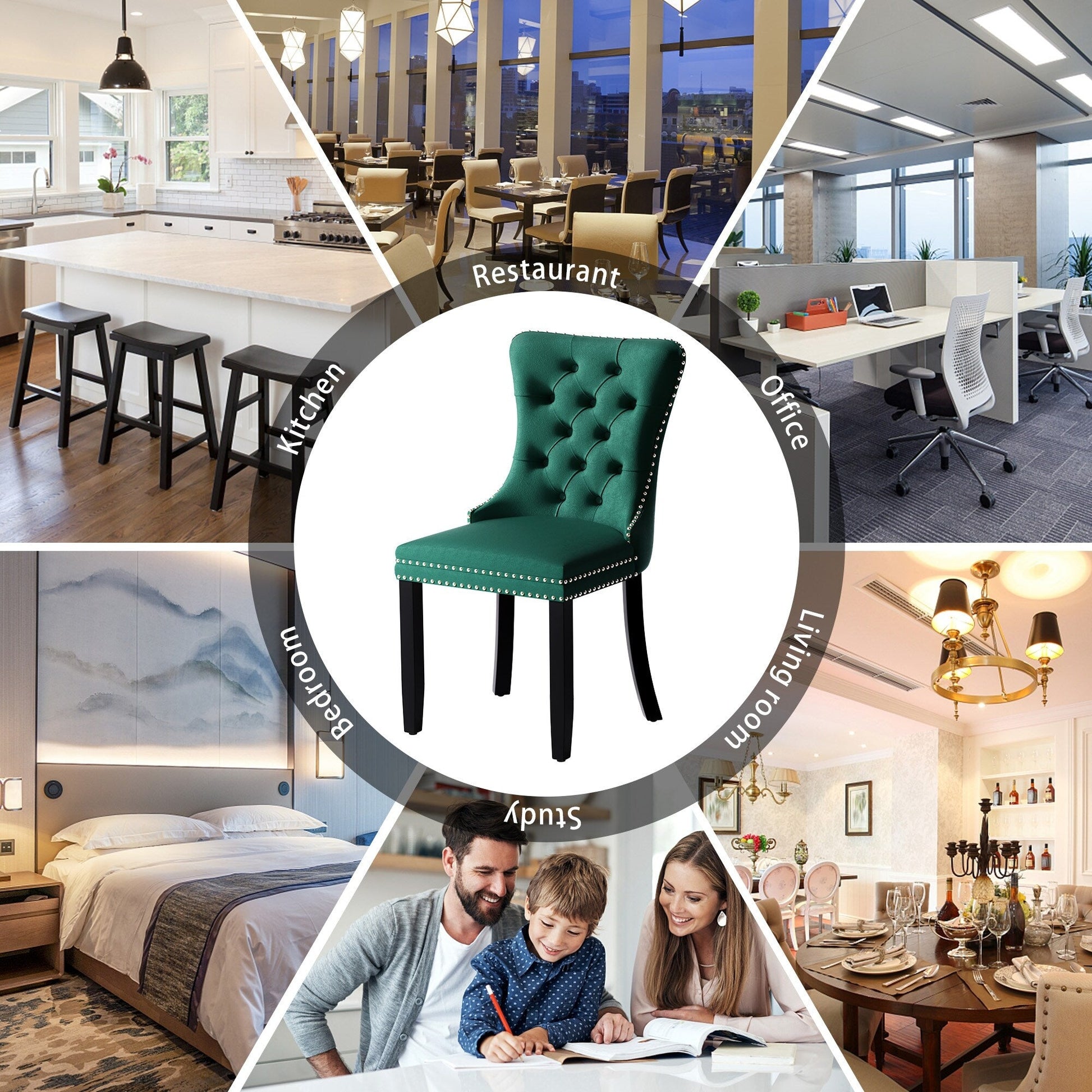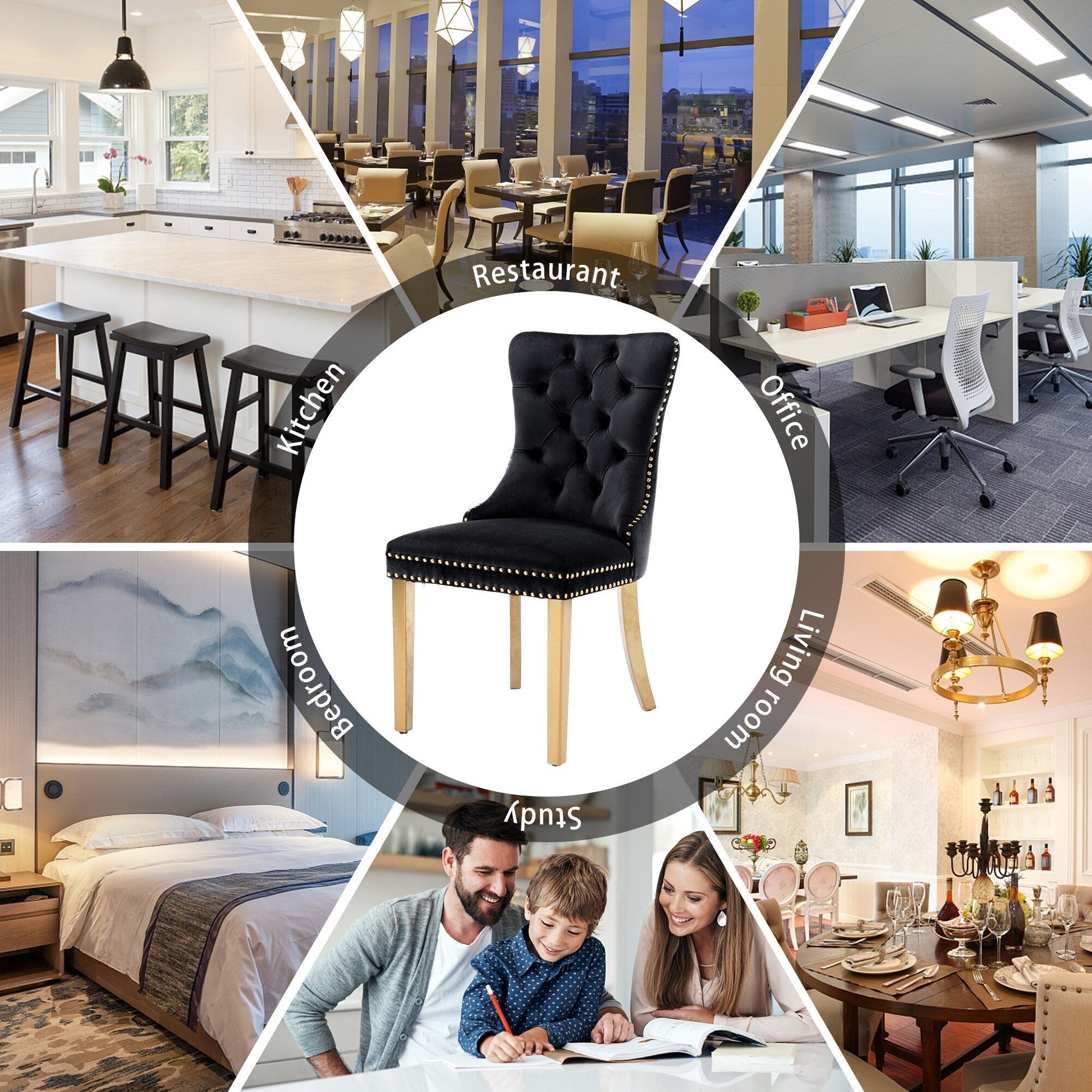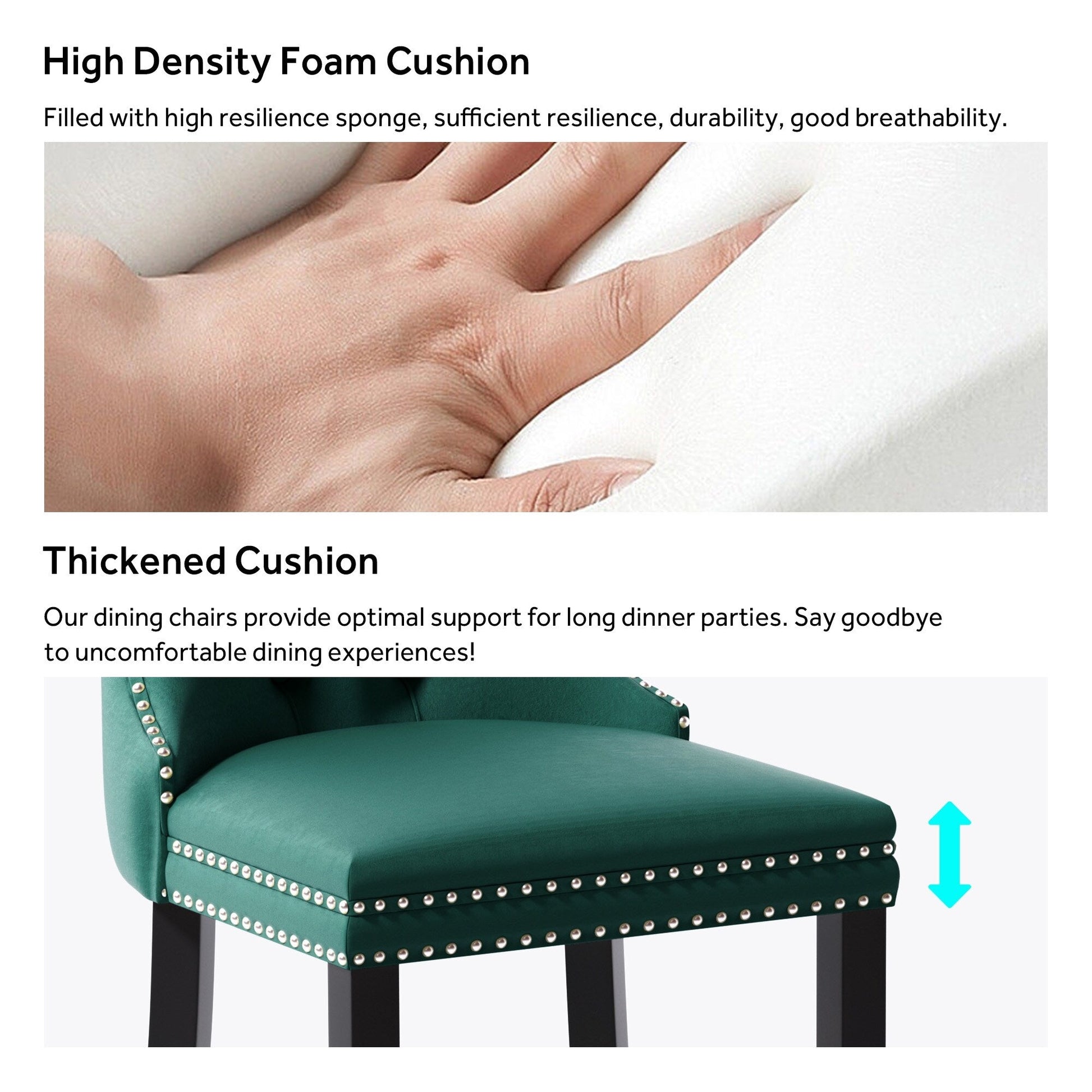 Ces chaises de salle à manger à oreilles sont fabriquées en velours de haute qualité, très résistant à l'usure et à la décoloration. Épais et luxueux, ce tissu offre un toucher délicat. Cet ensemble de chaises en velours arbore un style Mid-Century très moderne. Son dossier haut offre un soutien confortable et solide. De nombreux rivets décoratifs ornent le coussin et le dossier, lui conférant noblesse et élégance, tout en lui conférant une sensation de luxe raffiné. Nous fournissons des instructions et des vidéos de montage. Pour toute question, n'hésitez pas à nous contacter.