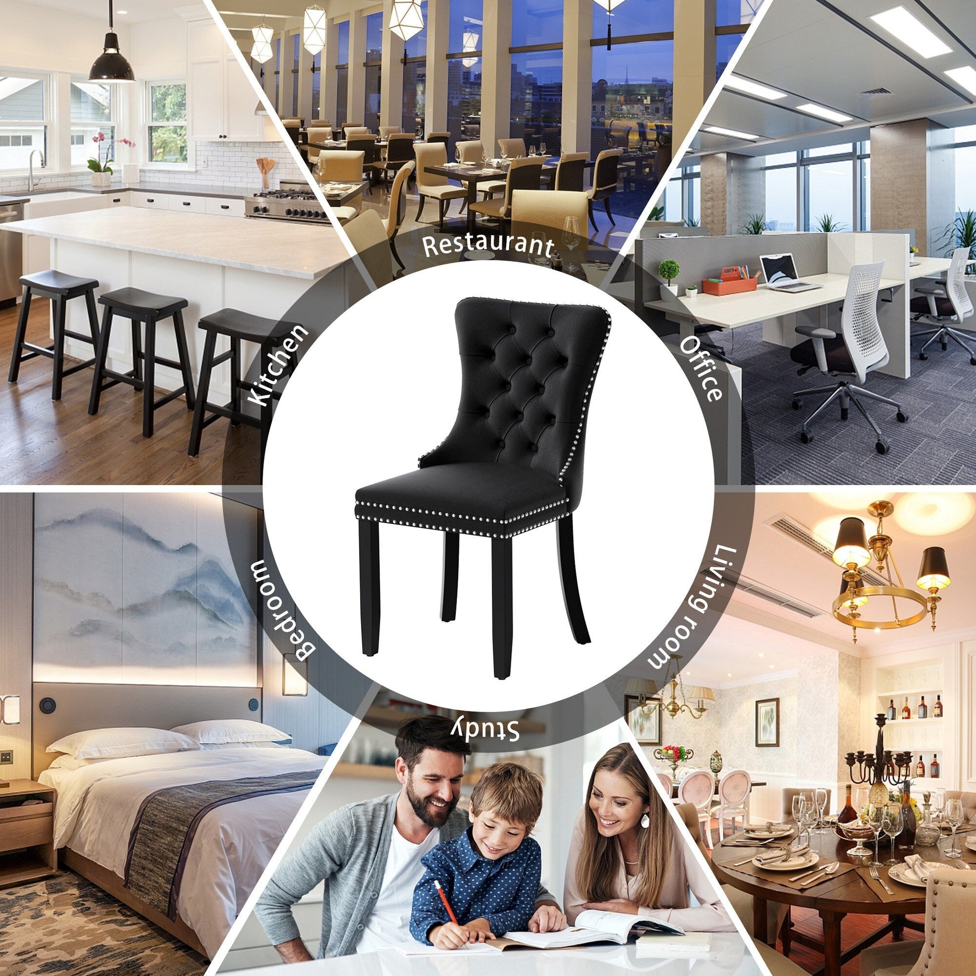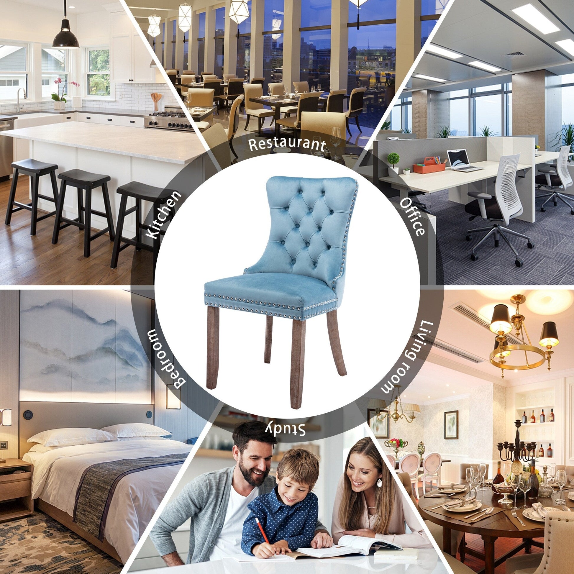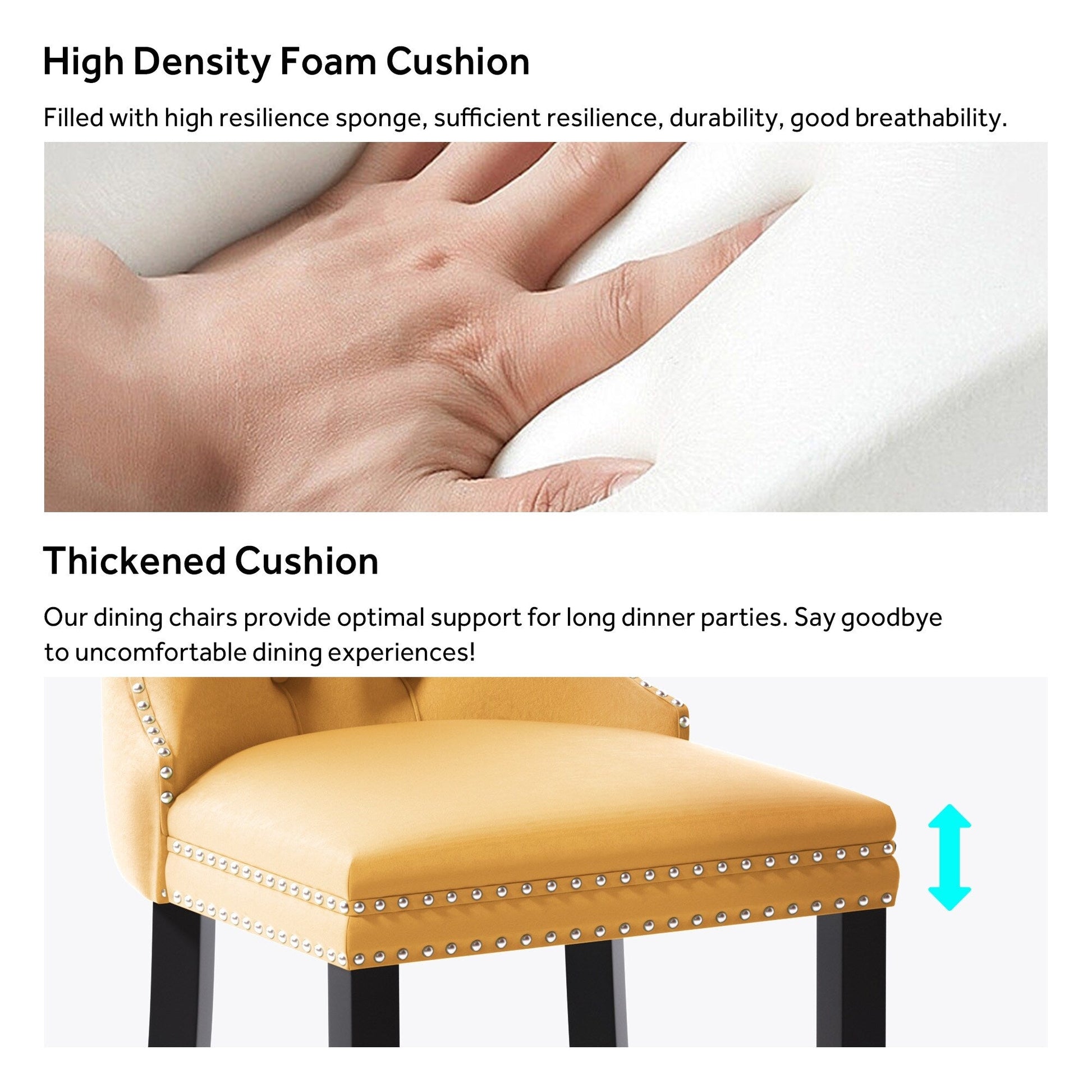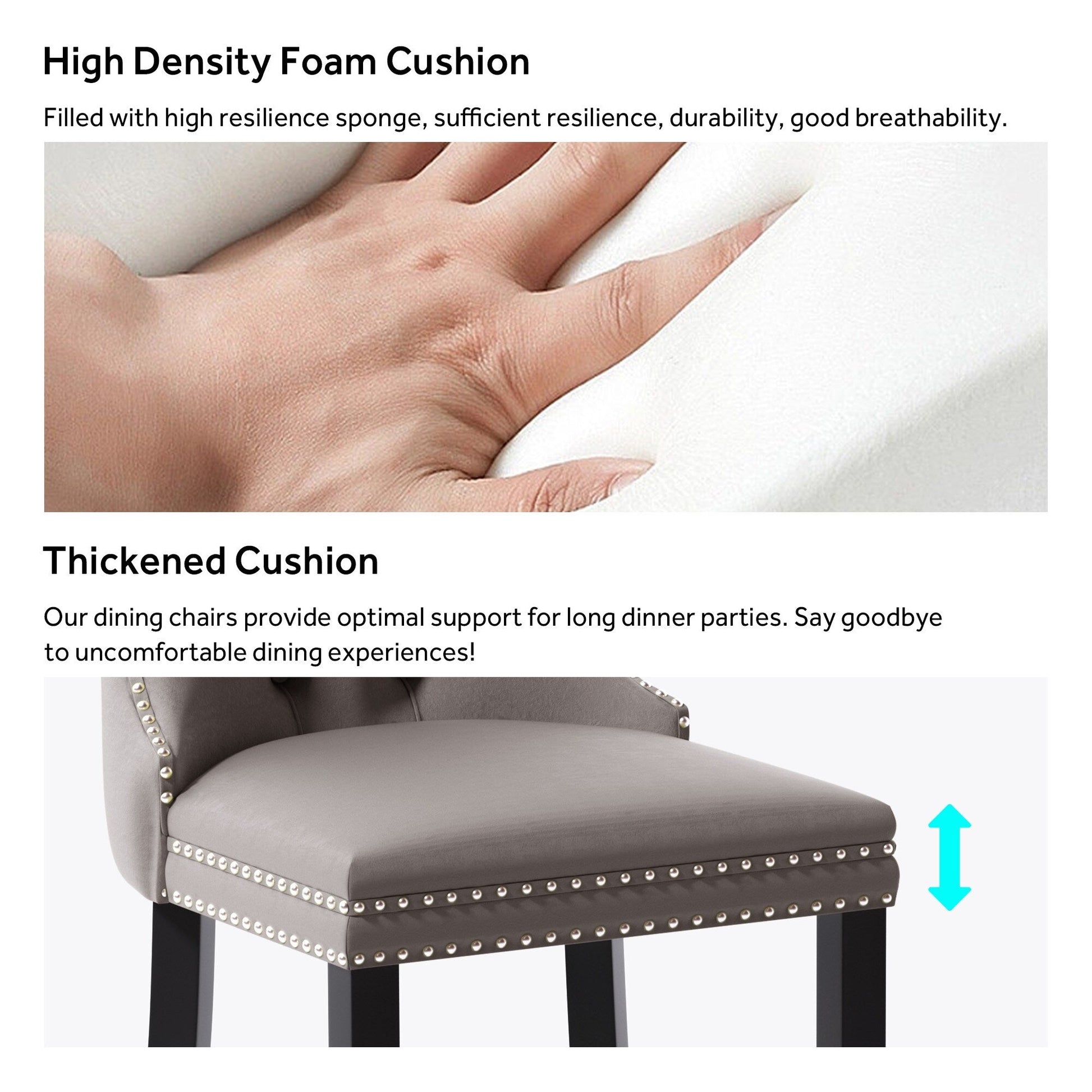 Ces chaises de salle à manger à oreilles sont fabriquées en velours de haute qualité, très résistant à l'usure et à la décoloration. Épais et luxueux, ce tissu offre un toucher délicat. Cet ensemble de chaises en velours arbore un style Mid-Century très moderne. Son dossier haut offre un soutien confortable et solide. De nombreux rivets décoratifs ornent le coussin et le dossier, lui conférant noblesse et élégance, tout en lui conférant une sensation de luxe raffiné. Nous fournissons des instructions et des vidéos de montage. Pour toute question, n'hésitez pas à nous contacter.
