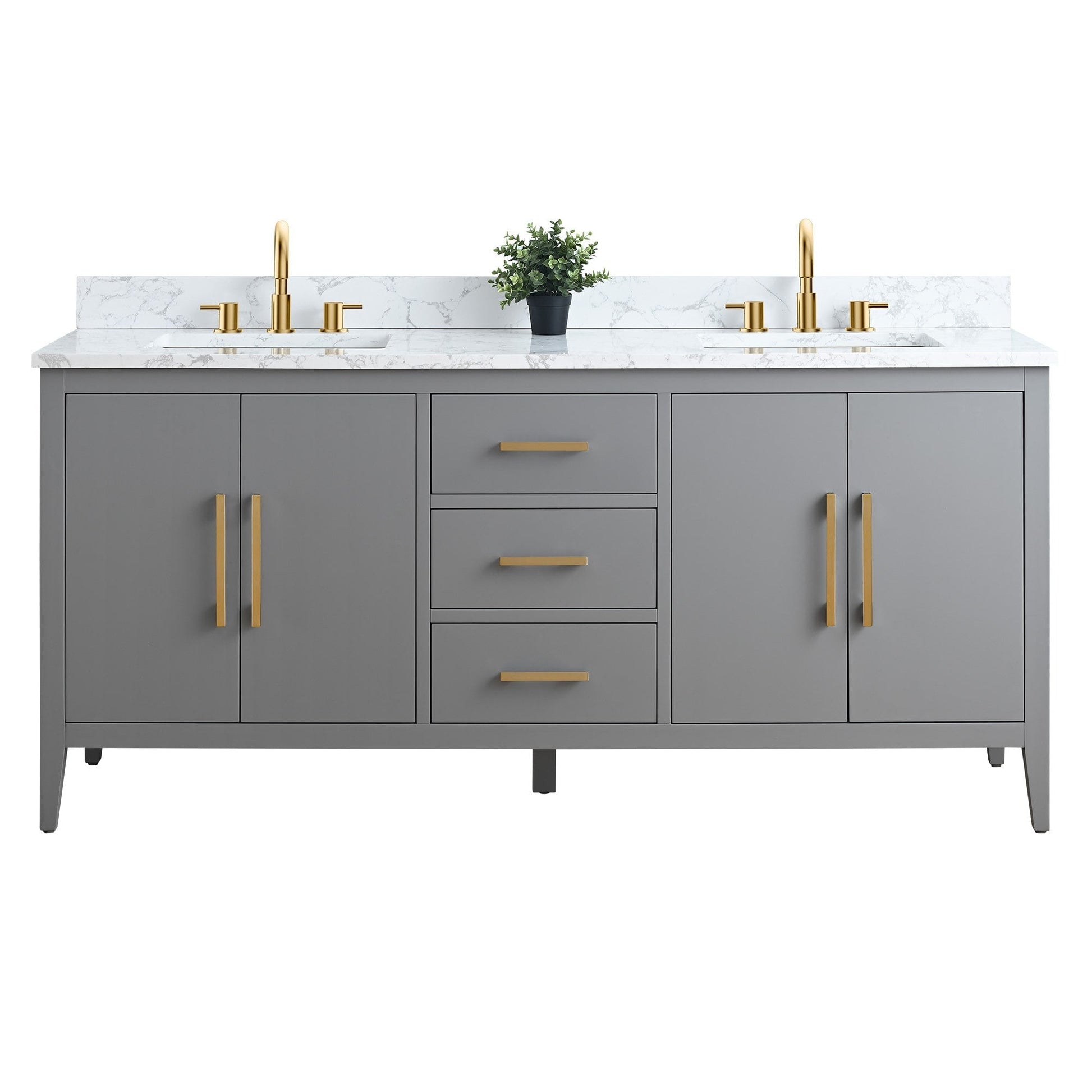 Meuble-lavabo double vasque Vanity Art 72 avec plateau en marbre reconstitué