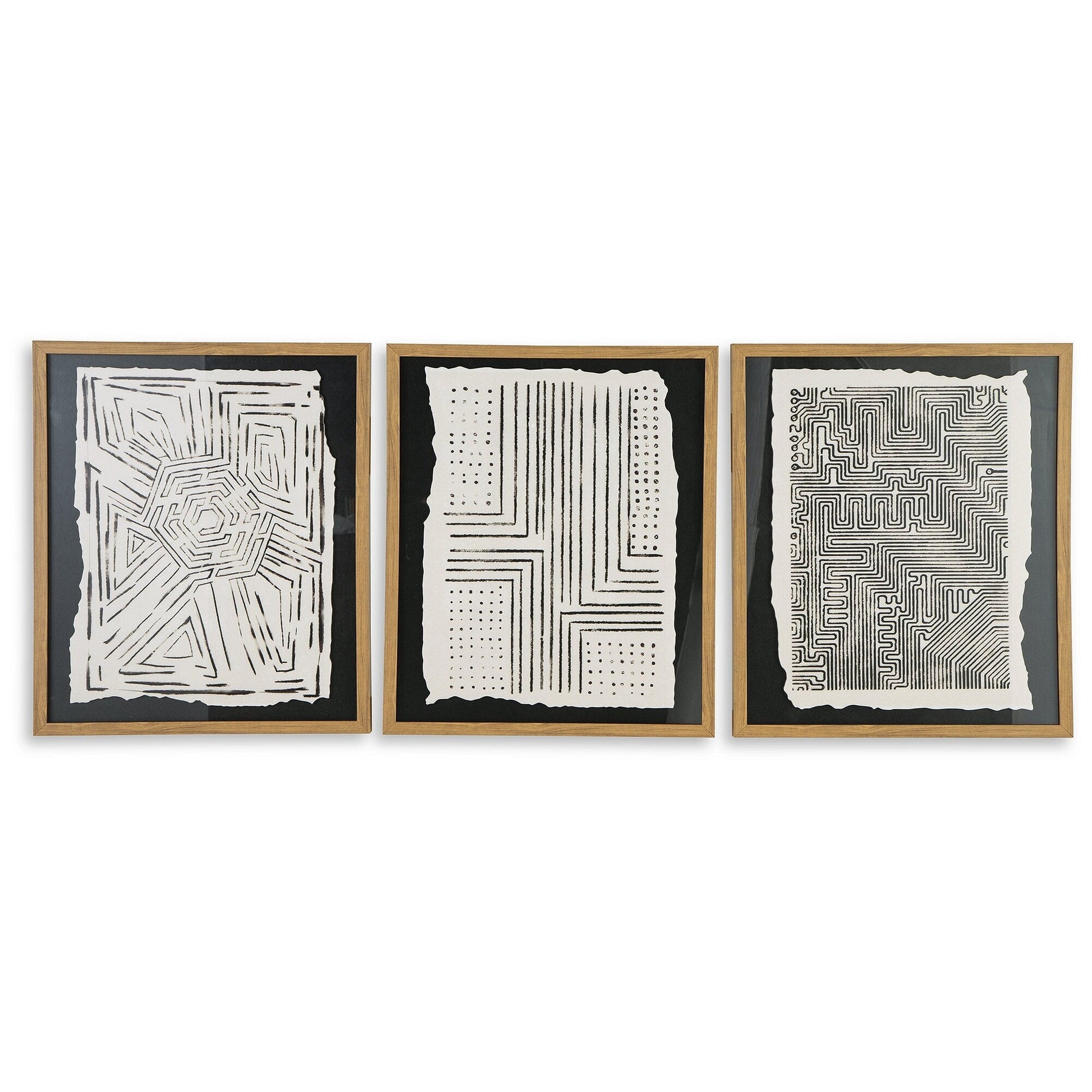 Master minimalism and movement with the Wonderstow wall art set. The geometric designs provide a pop of pattern for visual interest, while black and beige keep your color palette grounded. Place the three pieces together or hang them separately to keep a consistent aesthetic across multiple rooms.